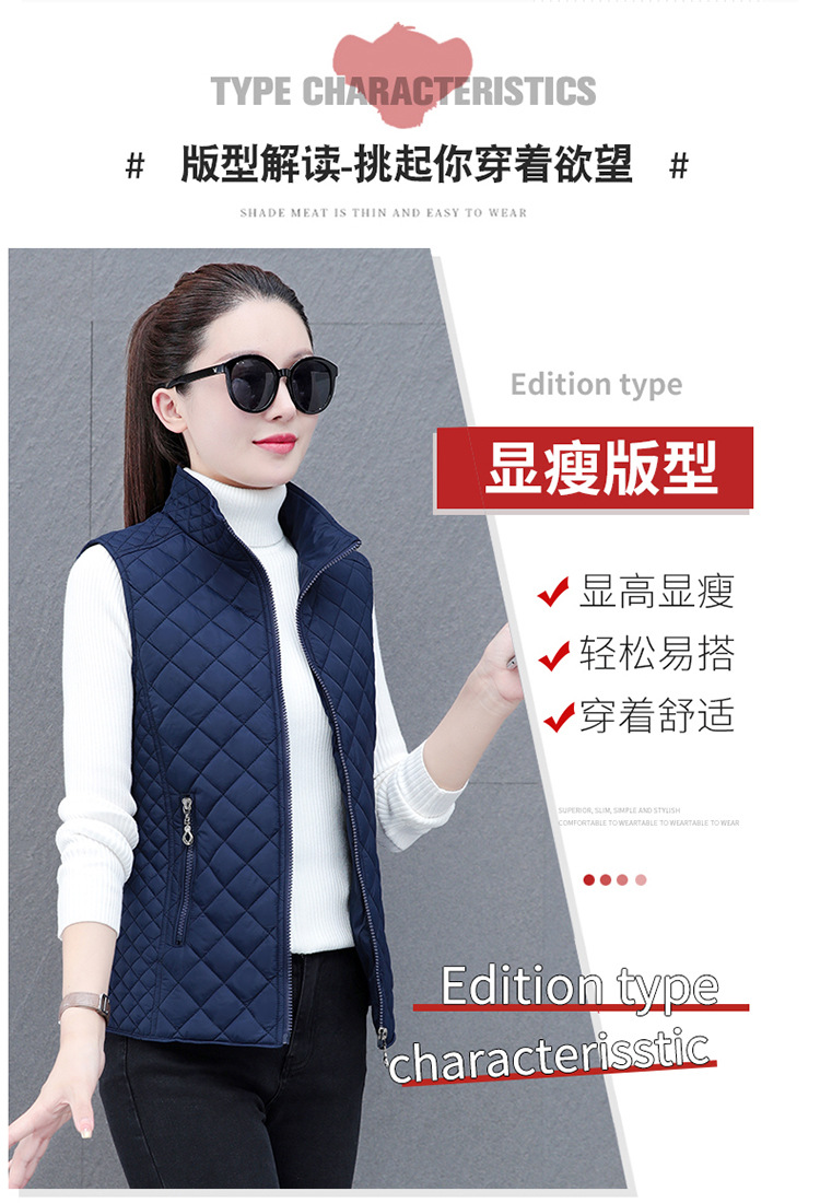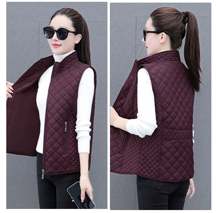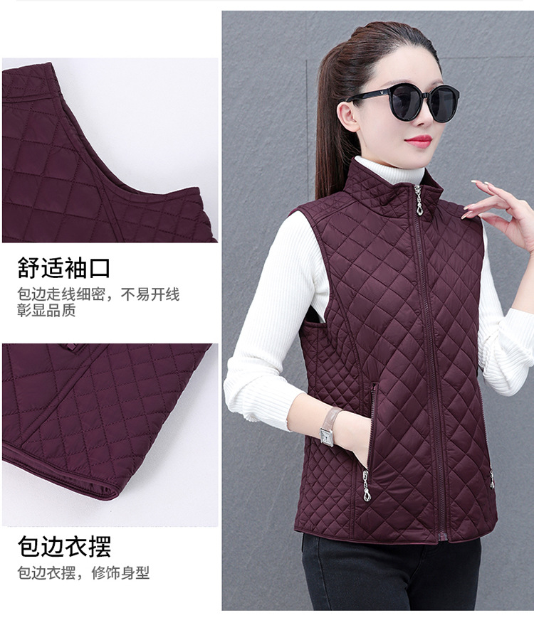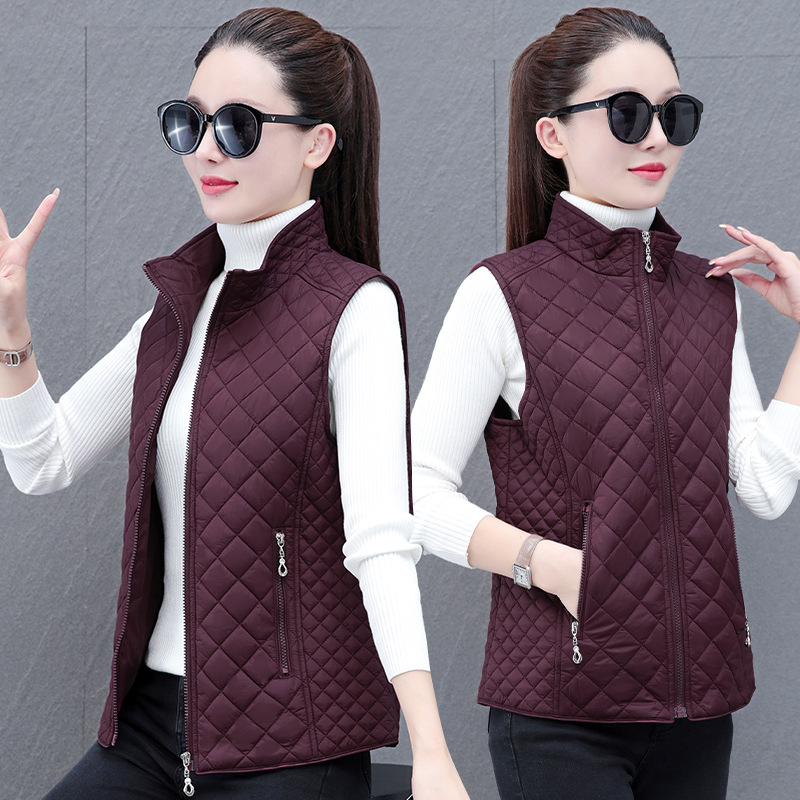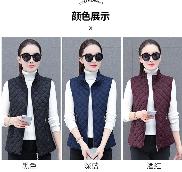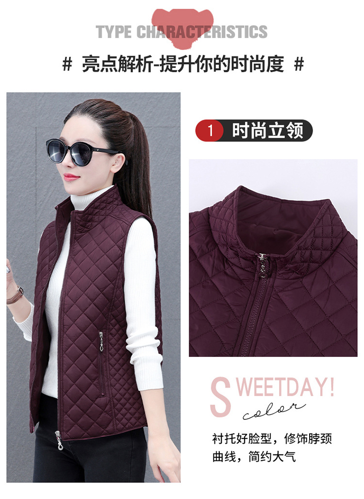 수직 칼라 라이트 다운 코튼 조끼 여성의 가을 및 겨울 짧은 조끼 중년 어머니 지퍼 카디건 조끼