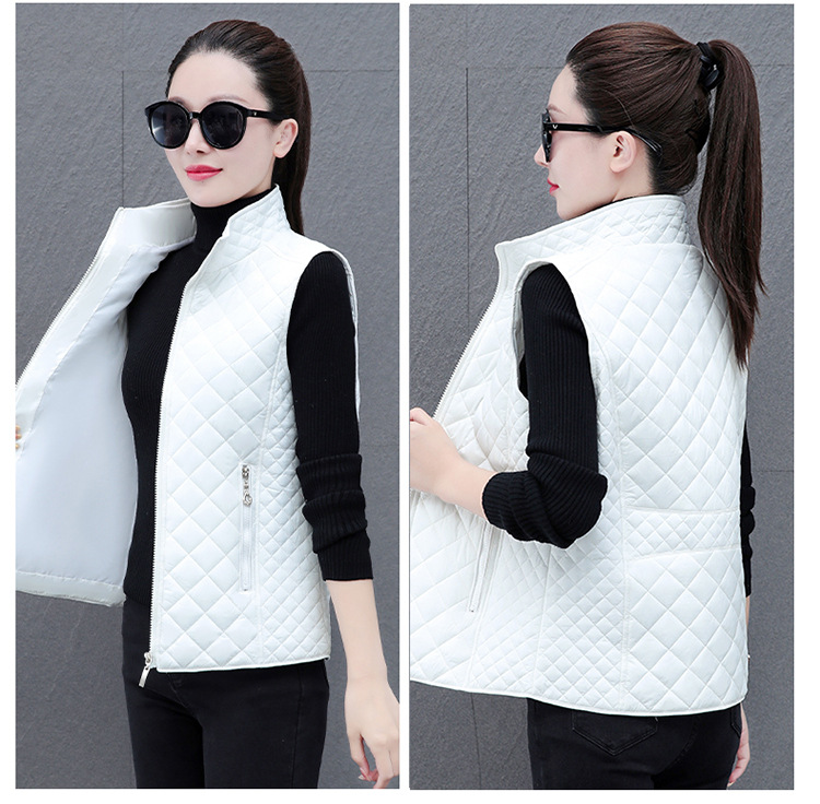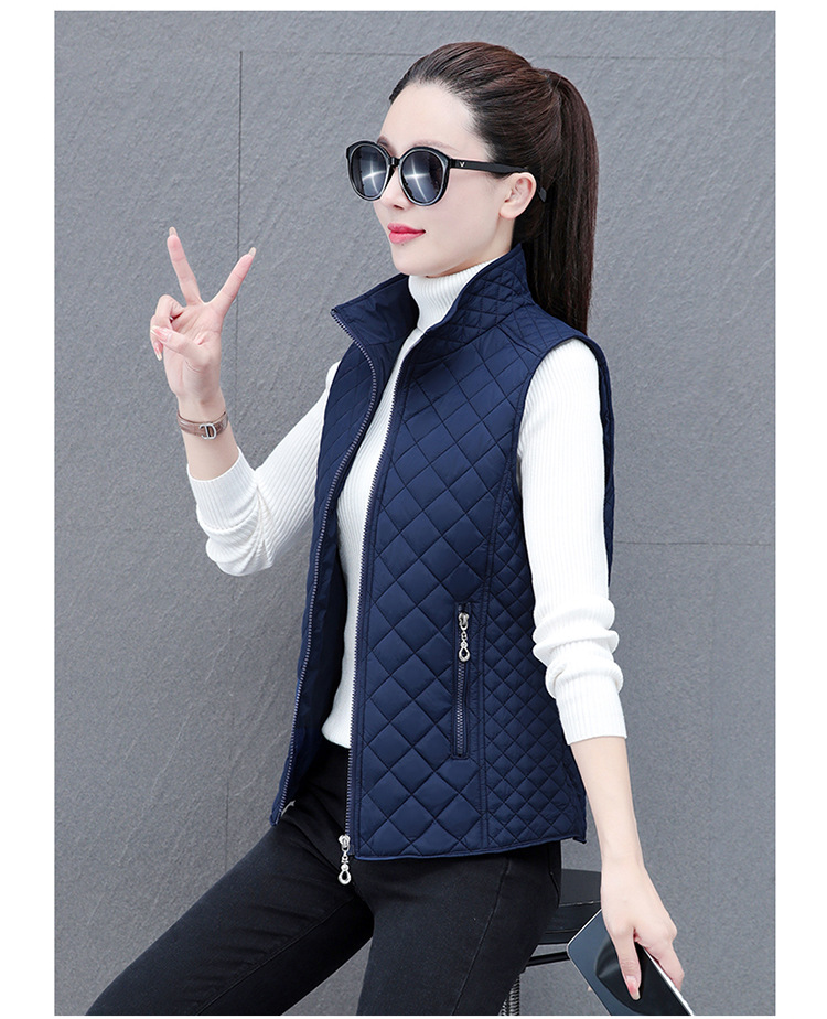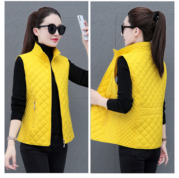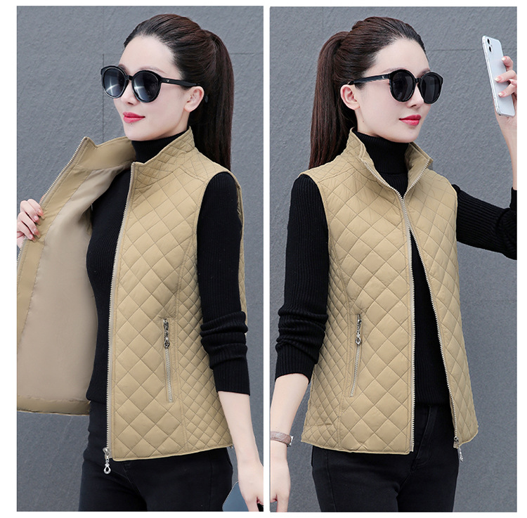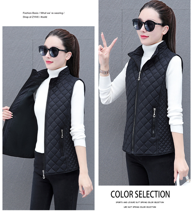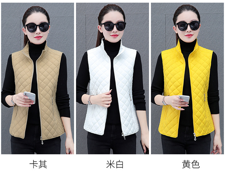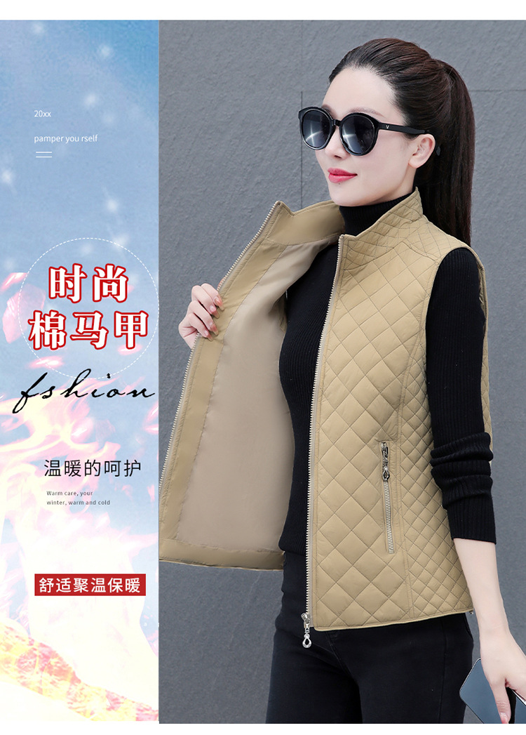수직 칼라 라이트 다운 코튼 조끼 여성의 가을 및 겨울 짧은 조끼 중년 어머니 지퍼 카디건 조끼