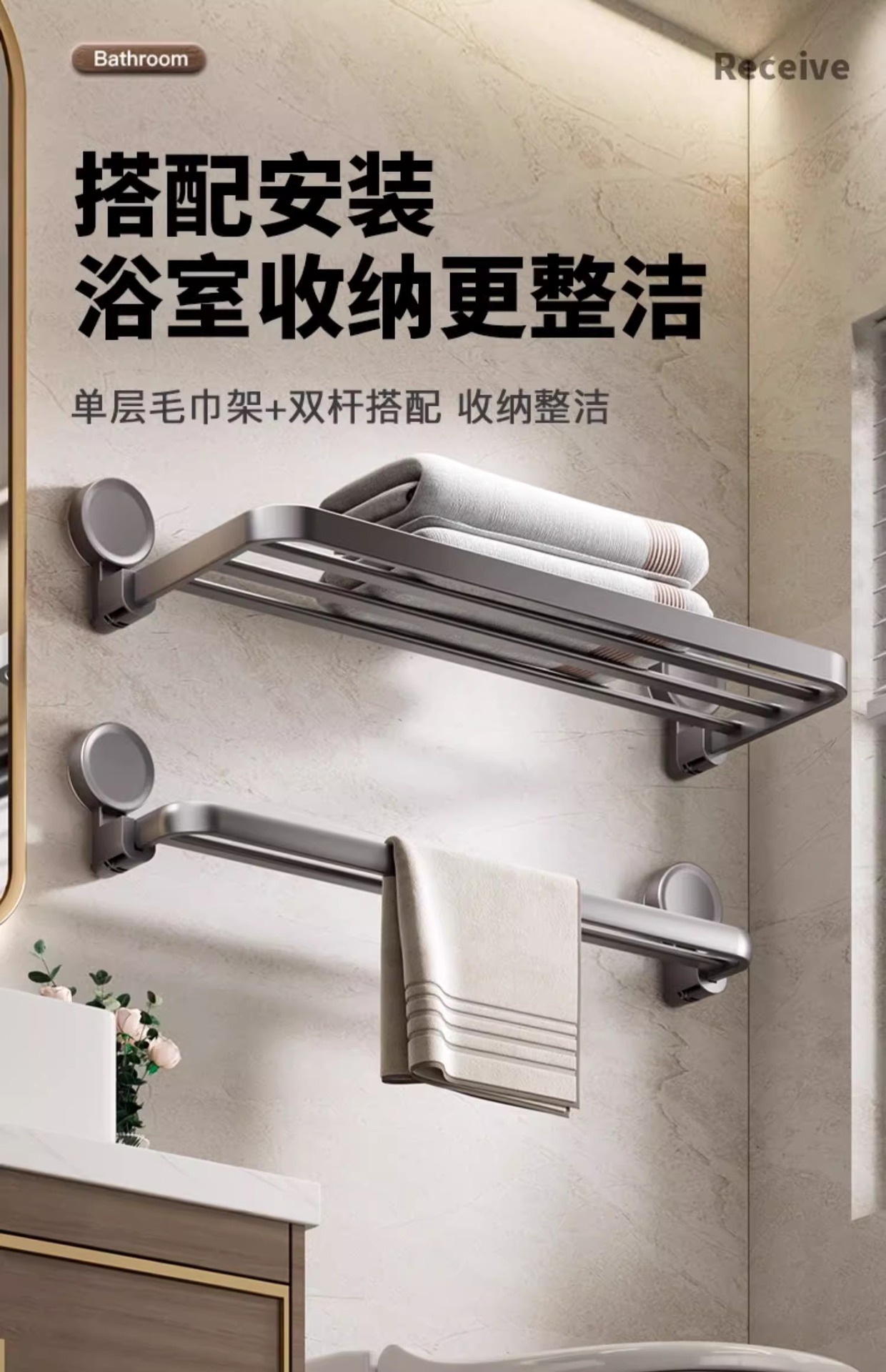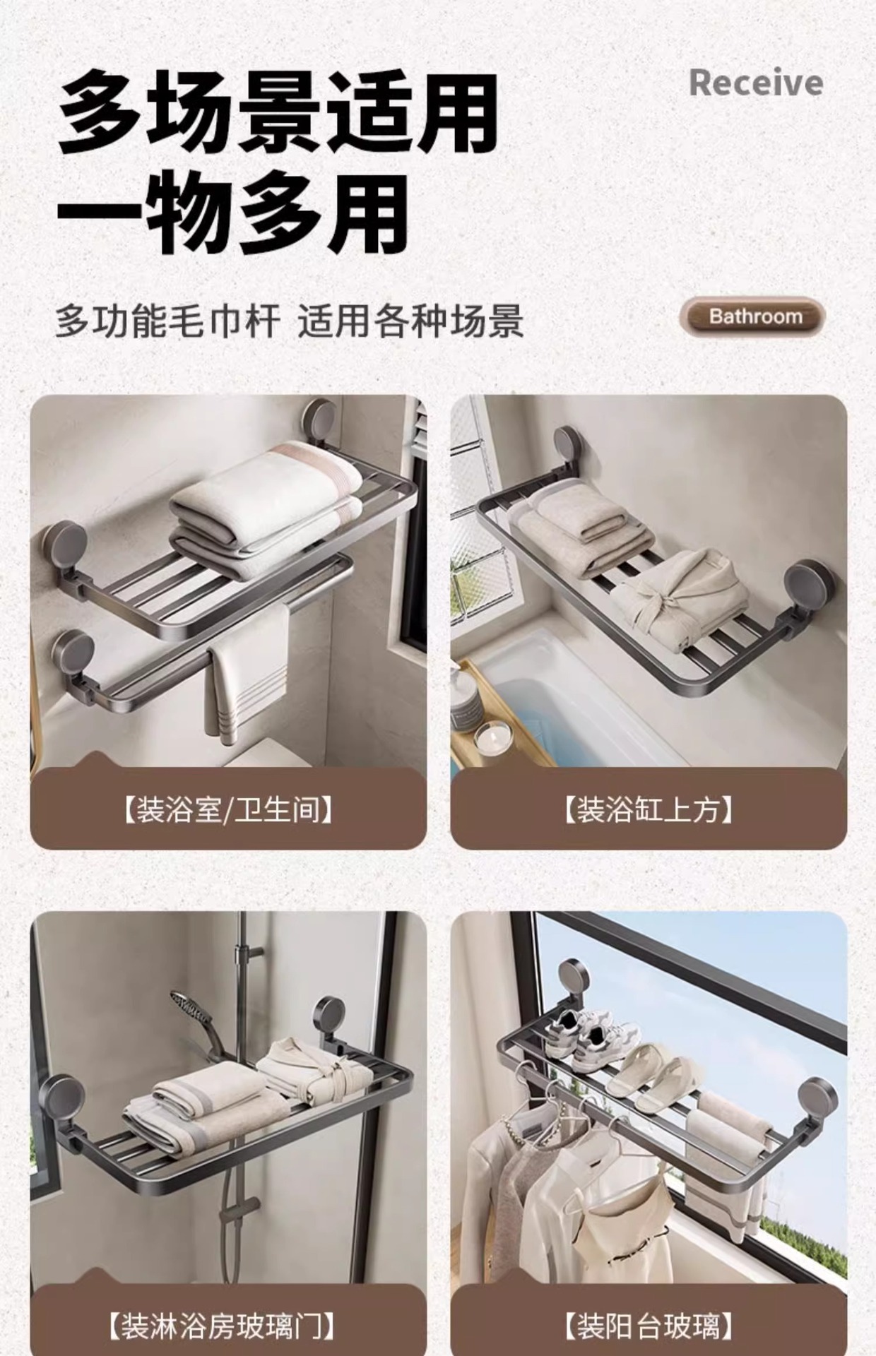수건 랙 흡입 컵 강력한 펀치없는 욕실 수건 랙 벽에 걸려있는 욕실 랙 접히는 타월 교수형 막대스토어 가기