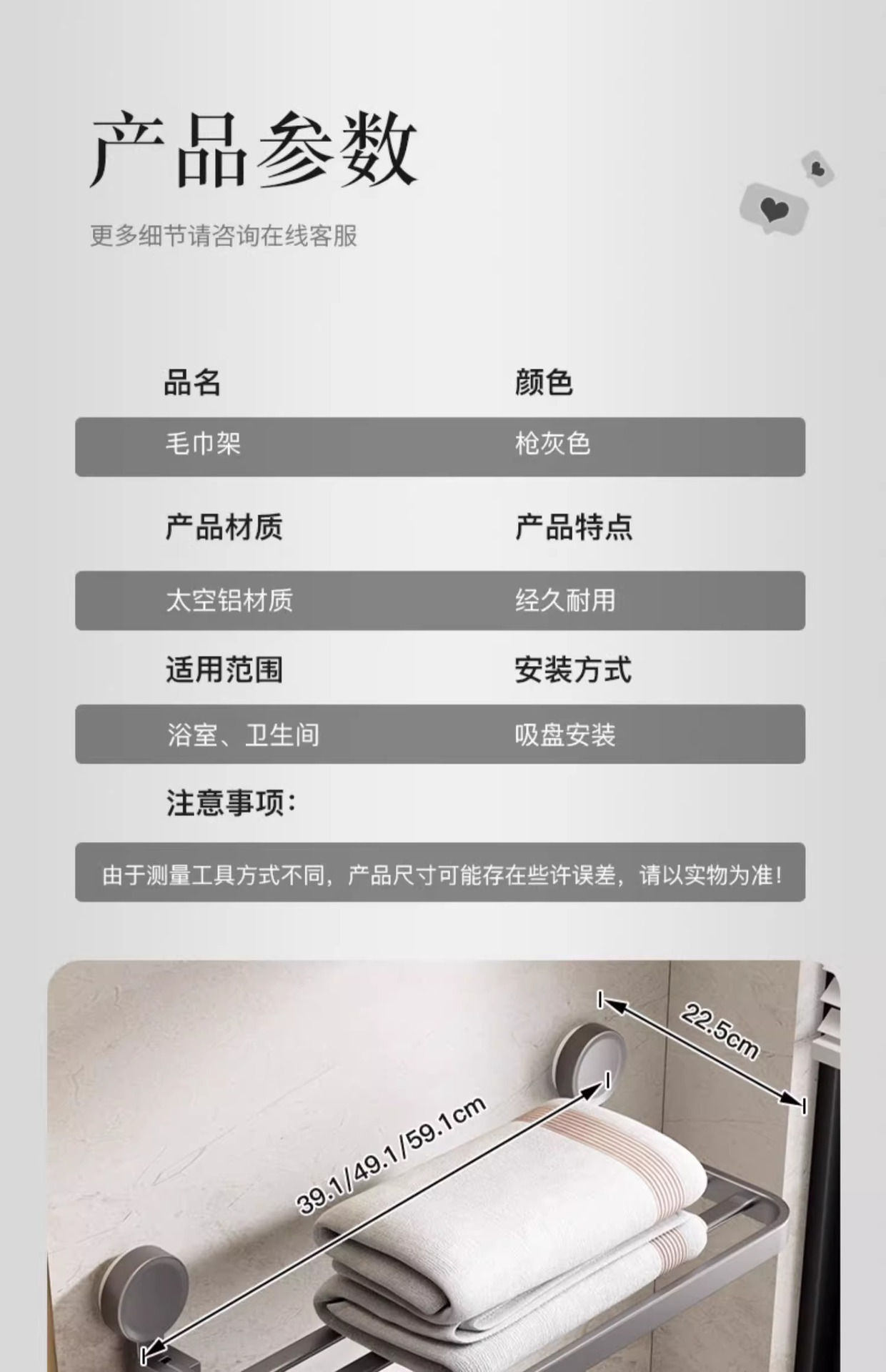 수건 랙 흡입 컵 강력한 펀치없는 욕실 수건 랙 벽에 걸려있는 욕실 랙 접히는 타월 교수형 막대