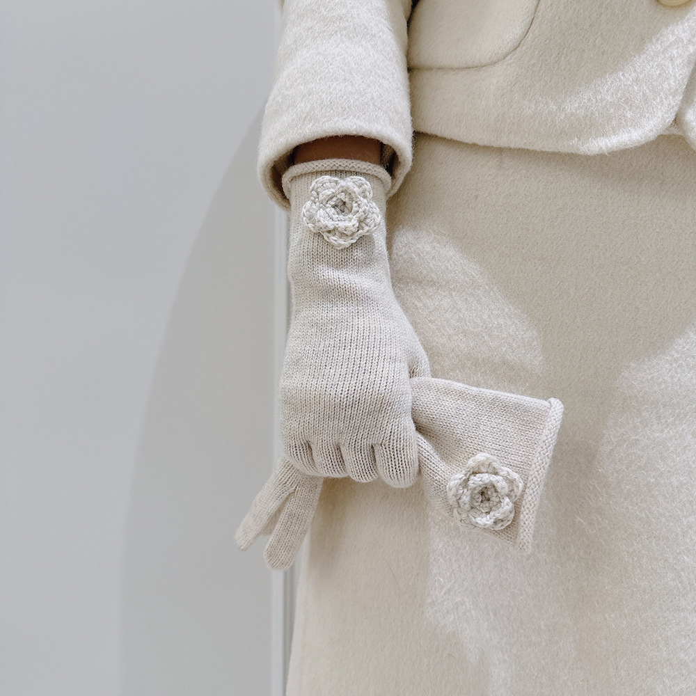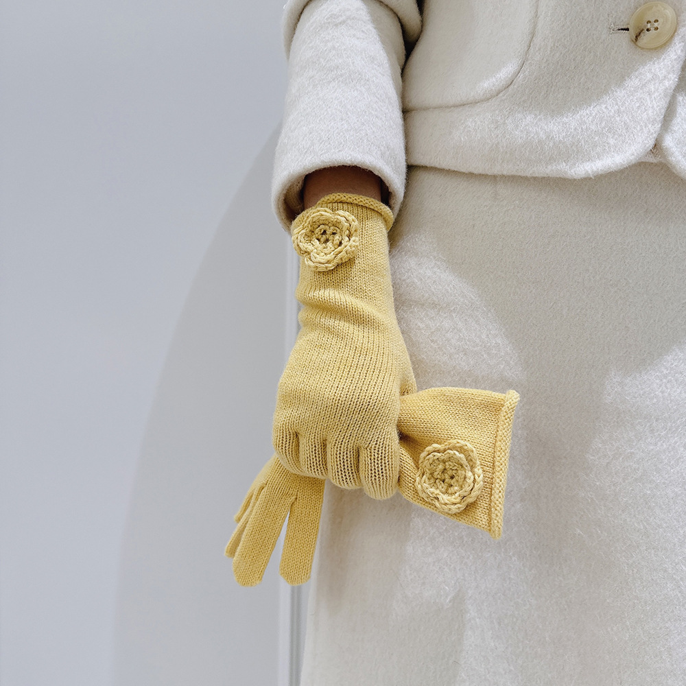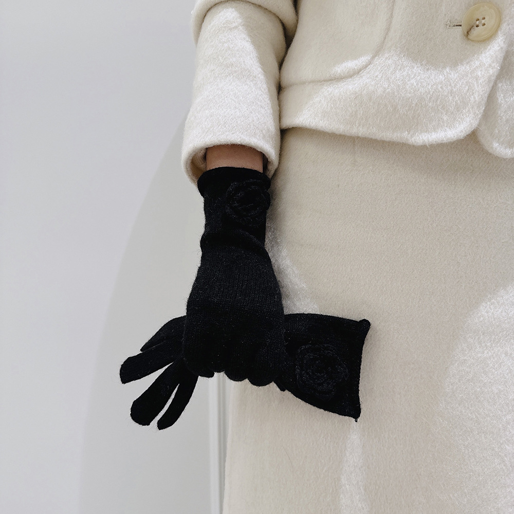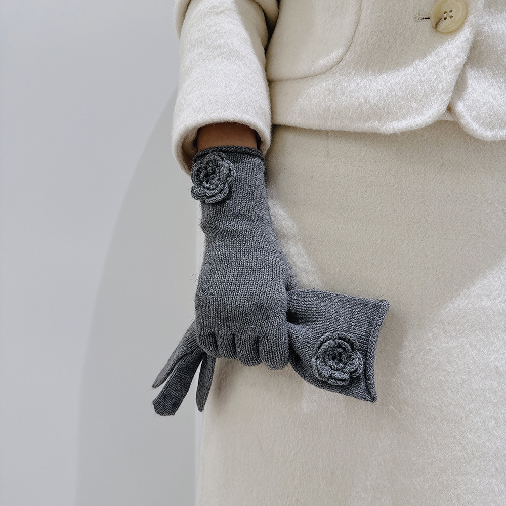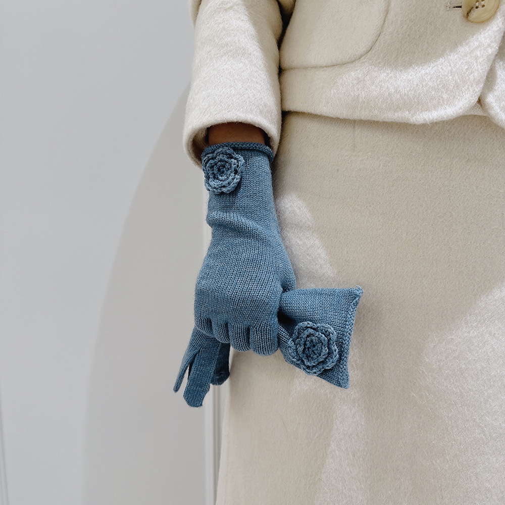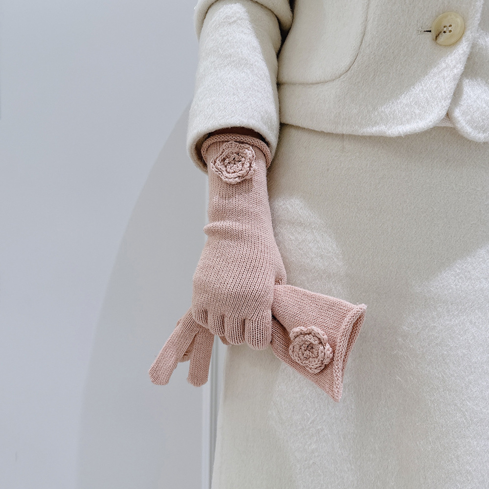 한국 달콤한 3 차원 수제 로즈 니트 울 장갑 풀 핑거 터치 스크린 여성의 겨울 따뜻한 장갑