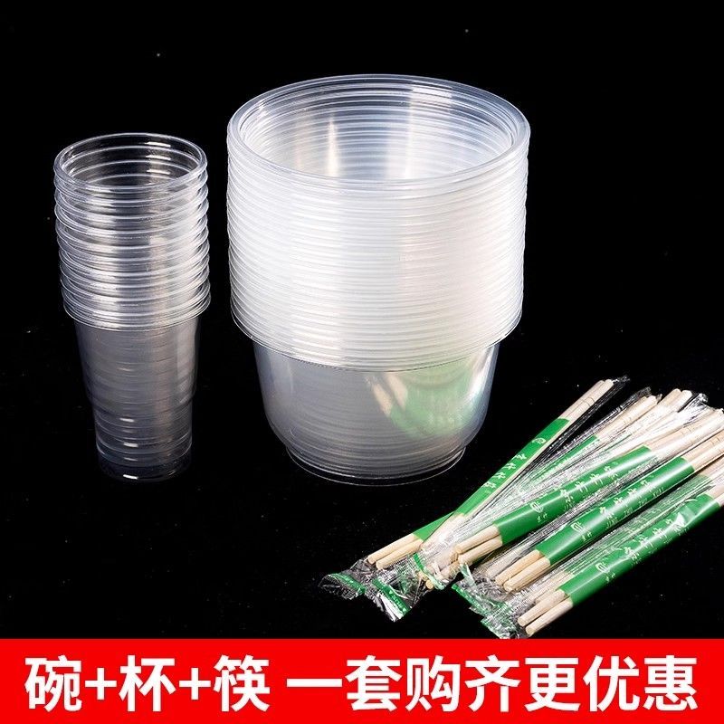 일회용 식기 그릇 젓가락 세트 가정용 수프 그릇 도시락 상자 젓가락 두꺼운 플라스틱 라운드 포장 패스트 푸드 박스 도매