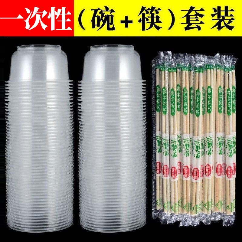 일회용 식기 그릇 젓가락 세트 가정용 수프 그릇 도시락 상자 젓가락 두꺼운 플라스틱 라운드 포장 패스트 푸드 박스 도매스토어 가기