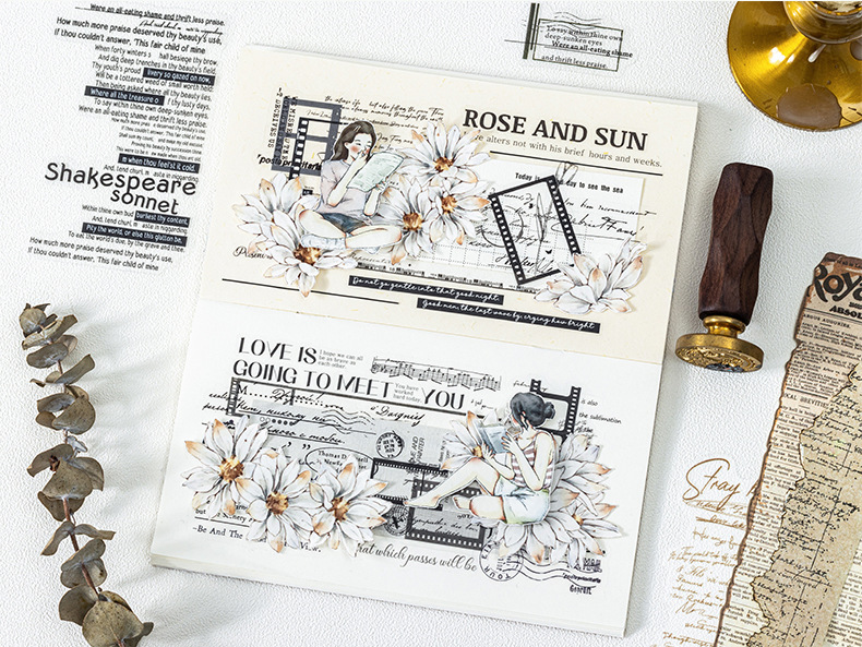 단편 잔여 장 영어 애완 동물 스티커 가방 간단한 영어 핸드북 콜라주 다양한 장식 기본 스티커