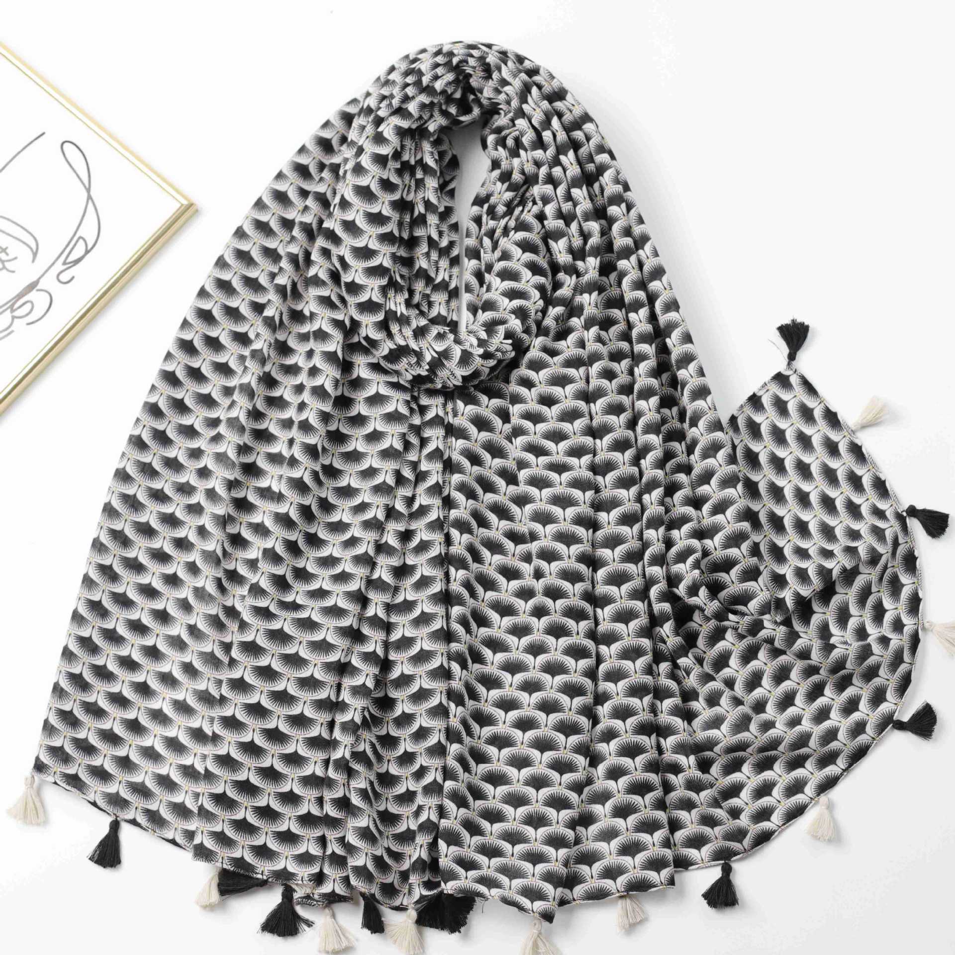 공장 판매 대외 무역 국경 흑백 잎 인쇄 스카프 가을과 겨울 남녀 남녀 모두 매치하는 따뜻한 스카프 목도리