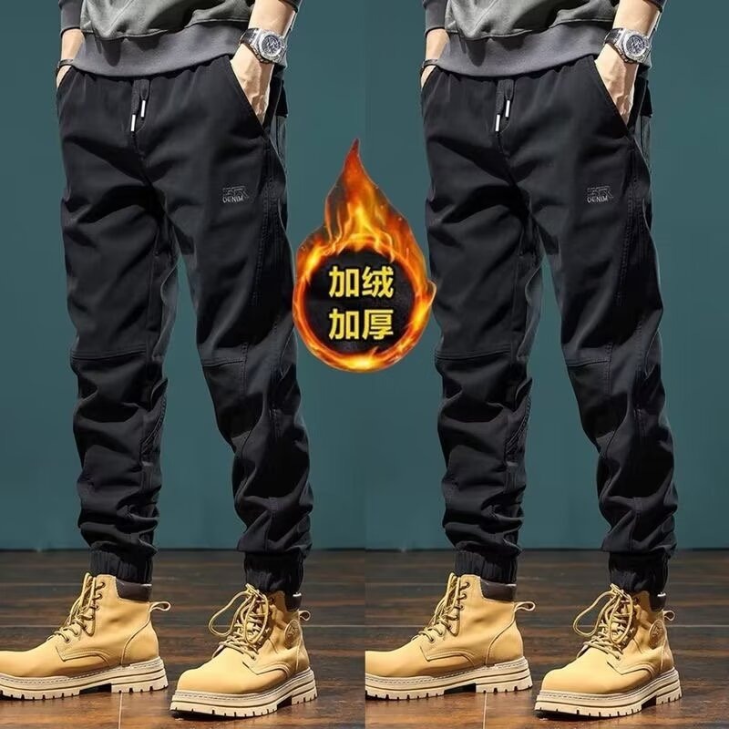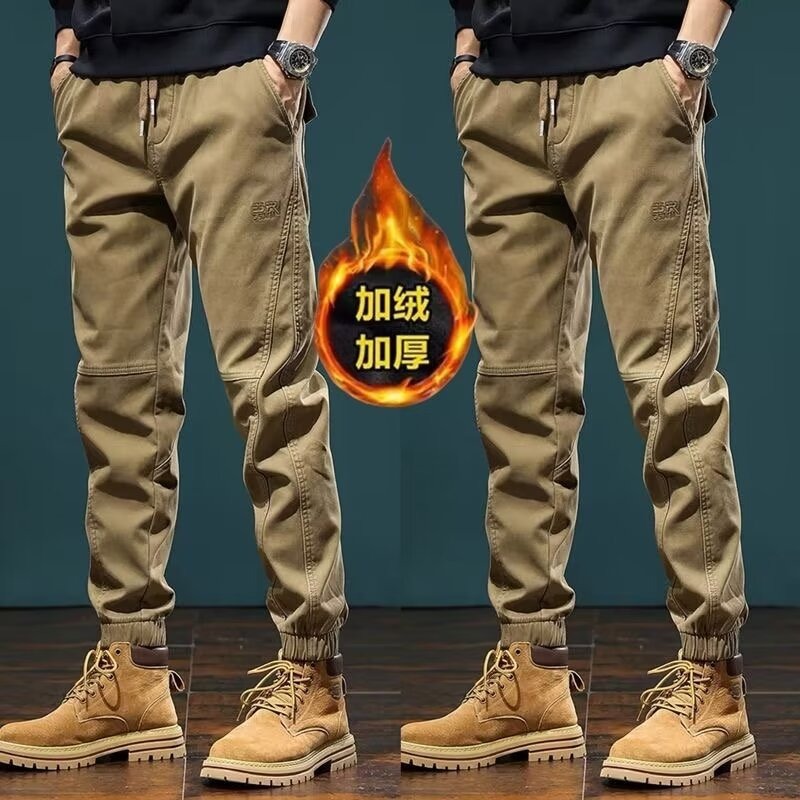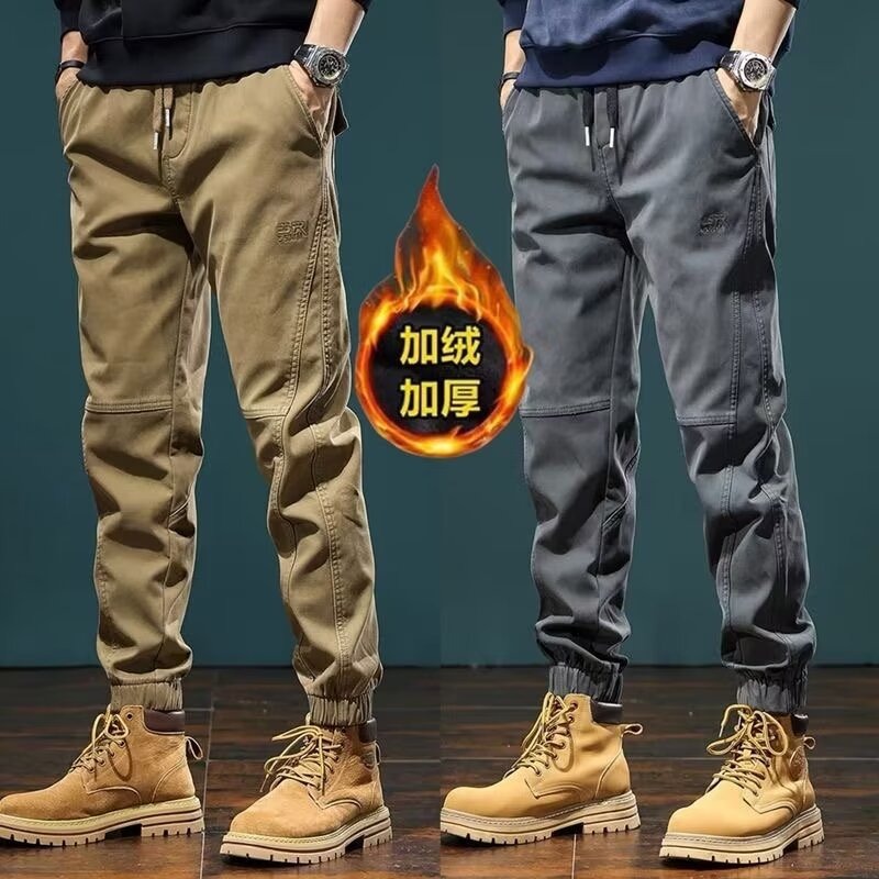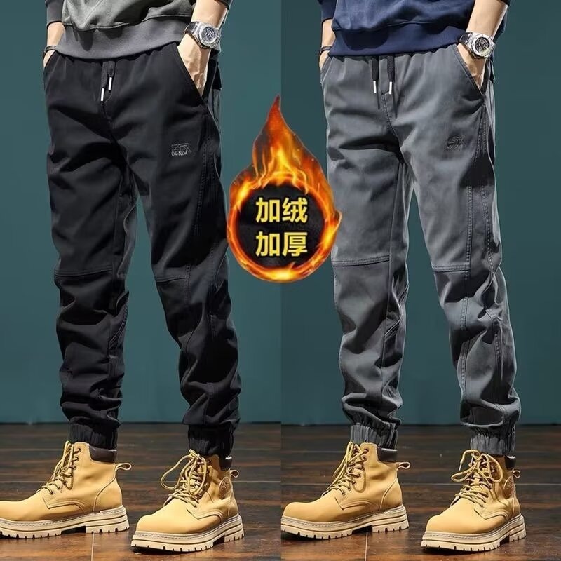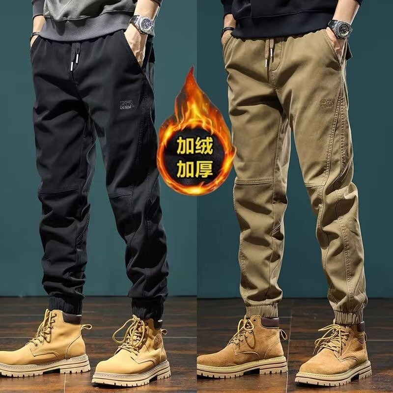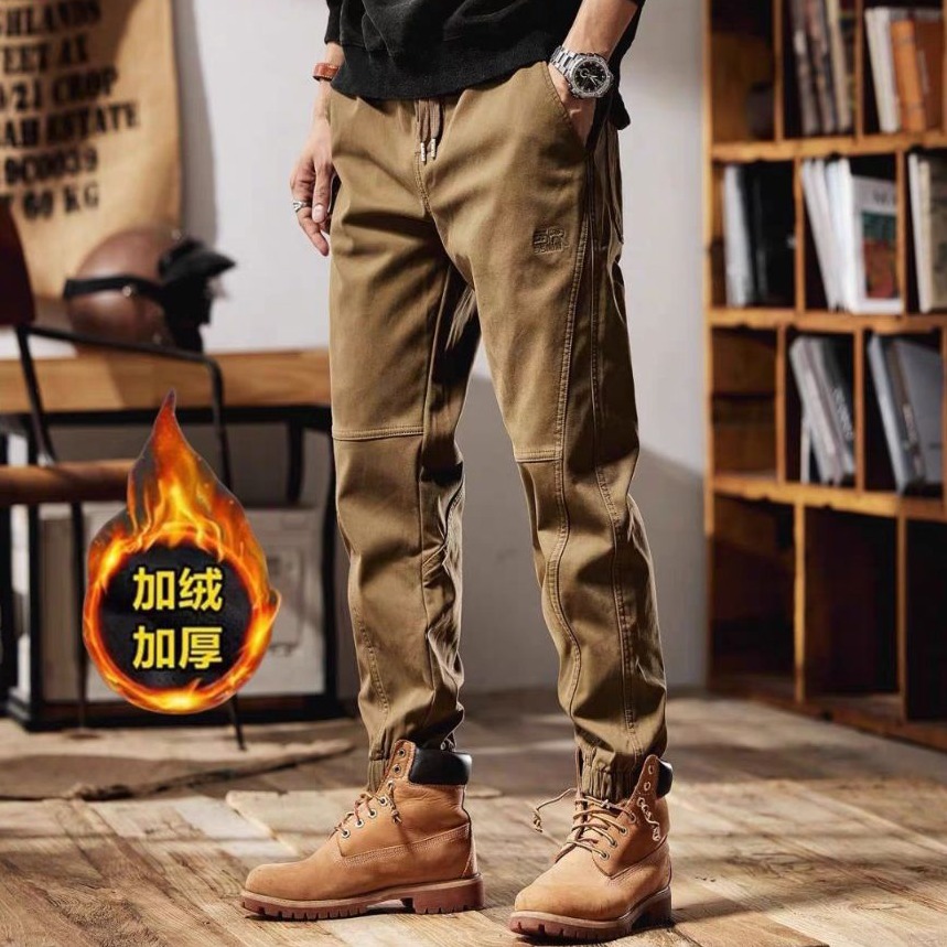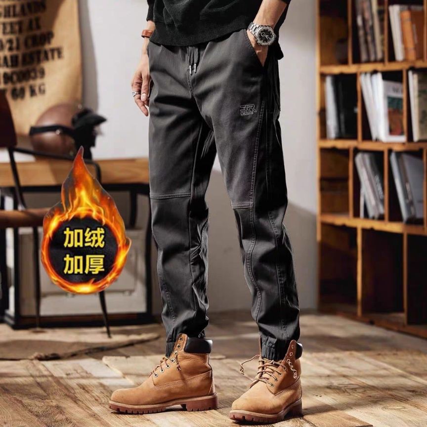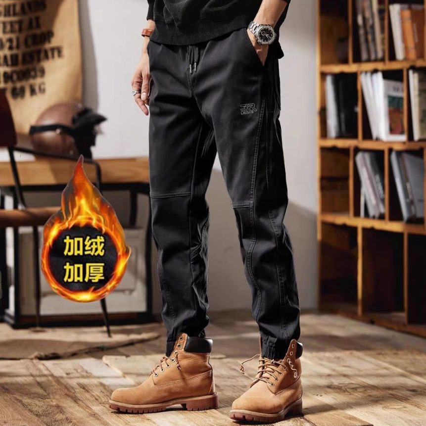 미국 스타일 디자인 센스 캐주얼 오버볼 남성 가을 새로운 느슨한 스트레이트 다리 기모 남성용 두꺼운 트렌디 브랜드 바지스토어 가기