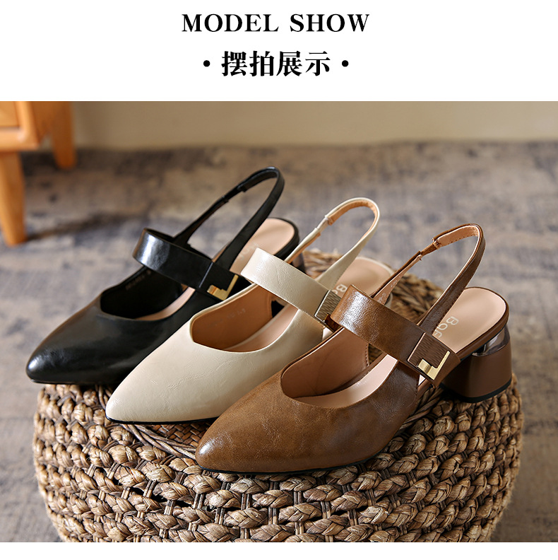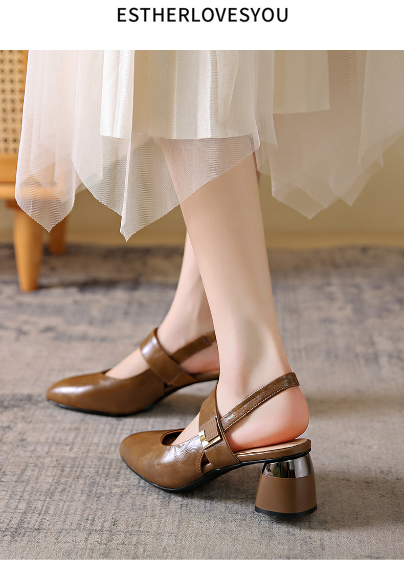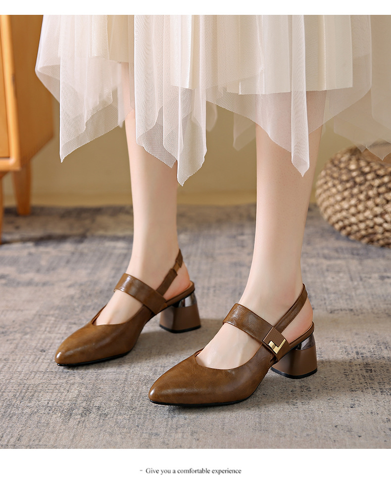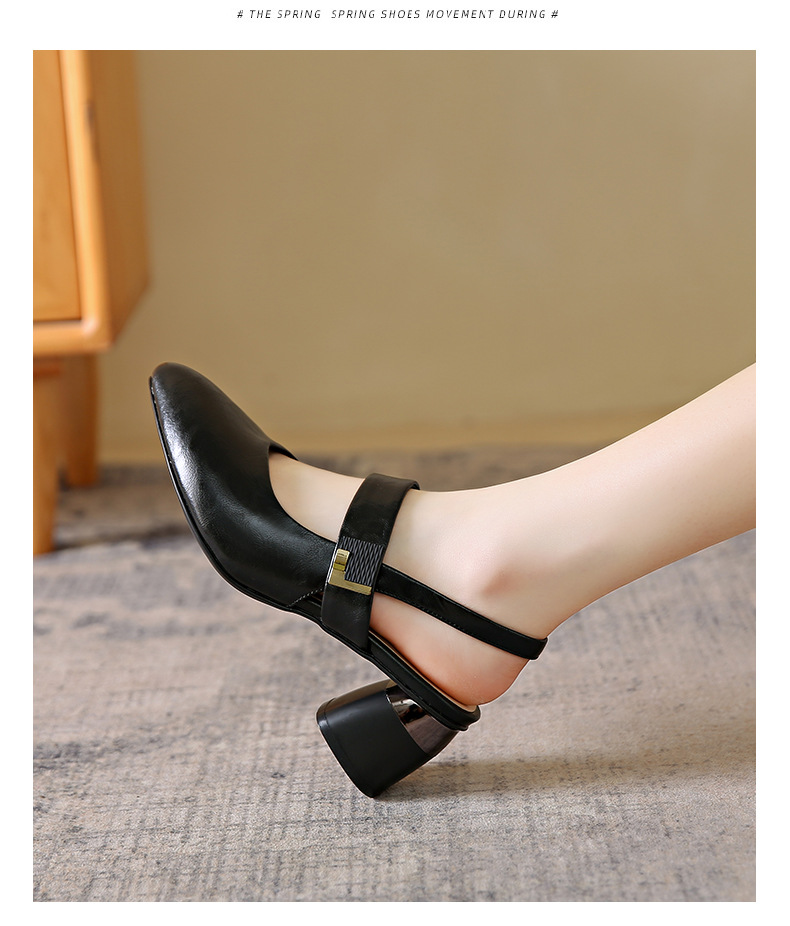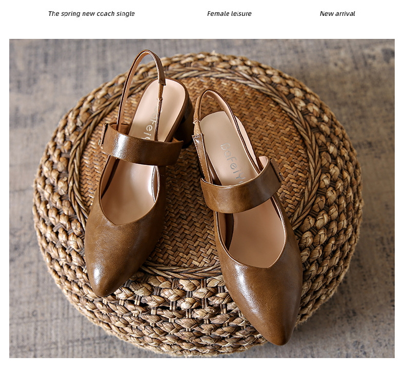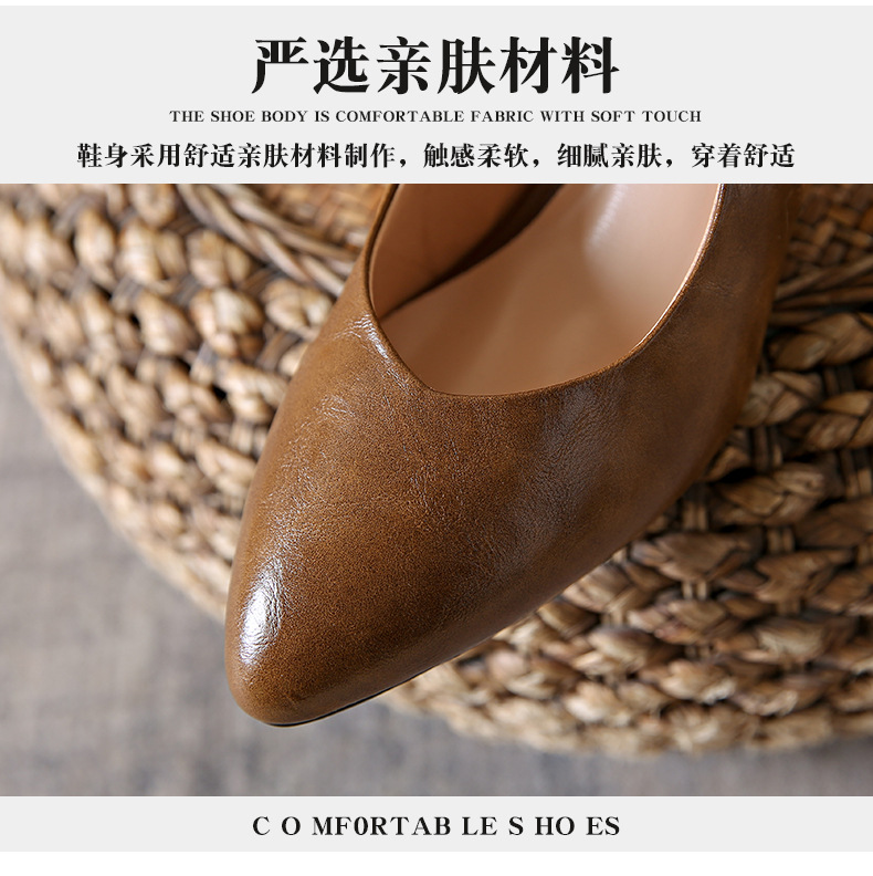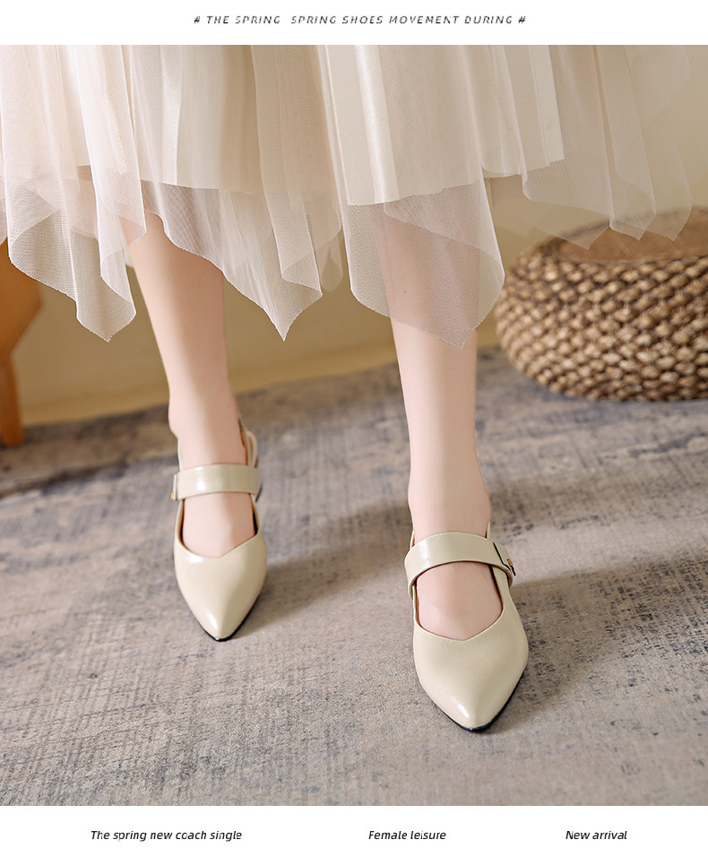 새로운 Guofeng 프랑스 뾰족한 발가락 작은 가죽 신발 하이힐 달콤한 버클 여성 신발 2024 가을 Baotou 두꺼운 힐 메리 제인 싱글 레이어 신발스토어 가기