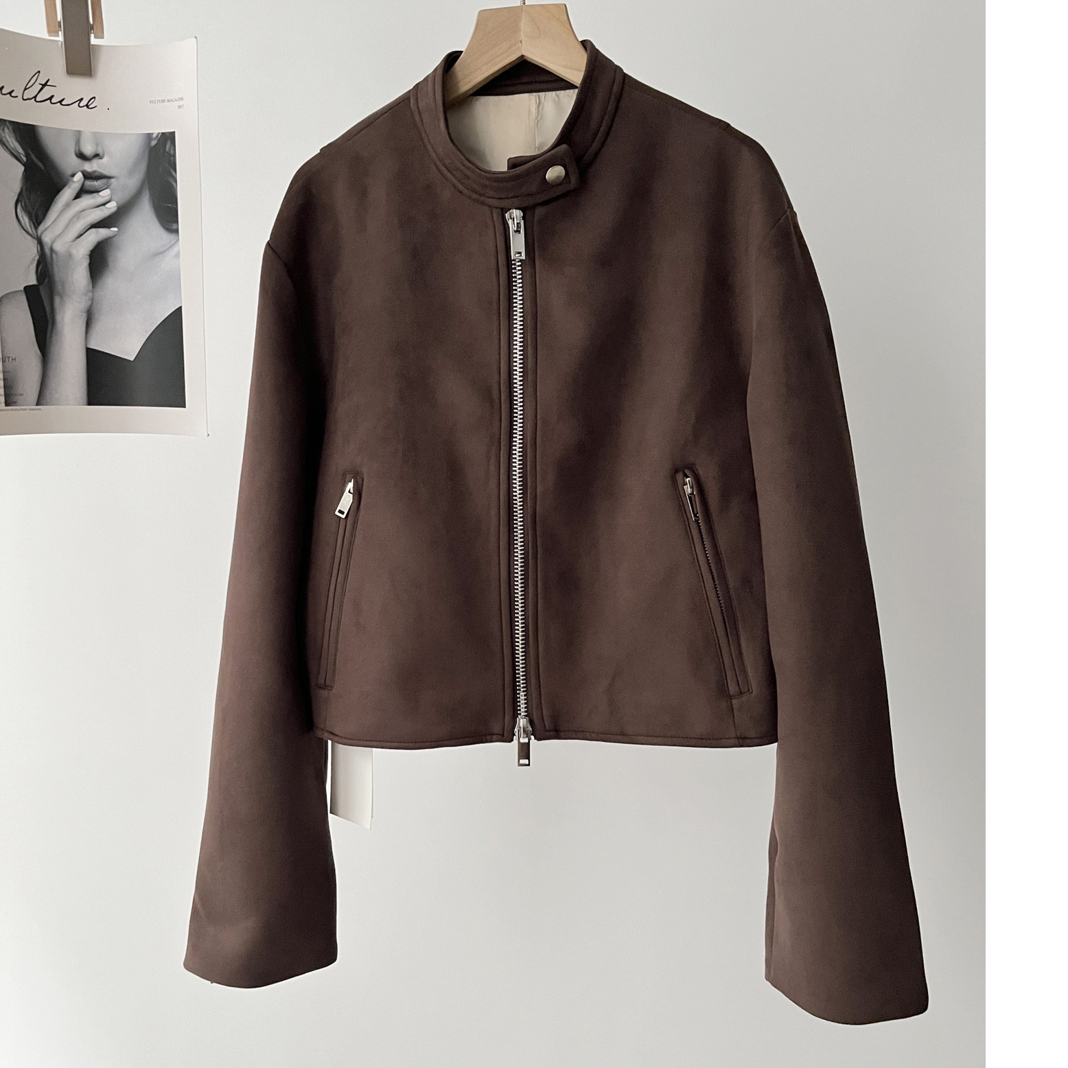 재고 에드 다크 브라운 가죽 코트 여성의 가을 새로운 빈티지 스웨이드 짧은 마일라드 탑 재킷스토어 가기