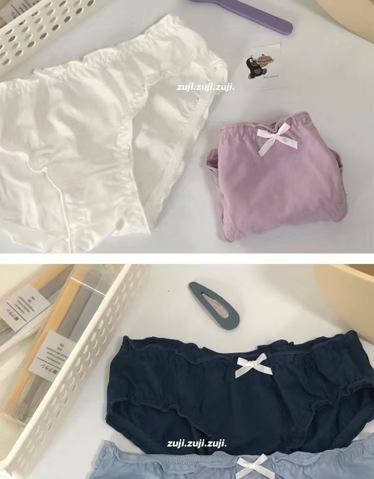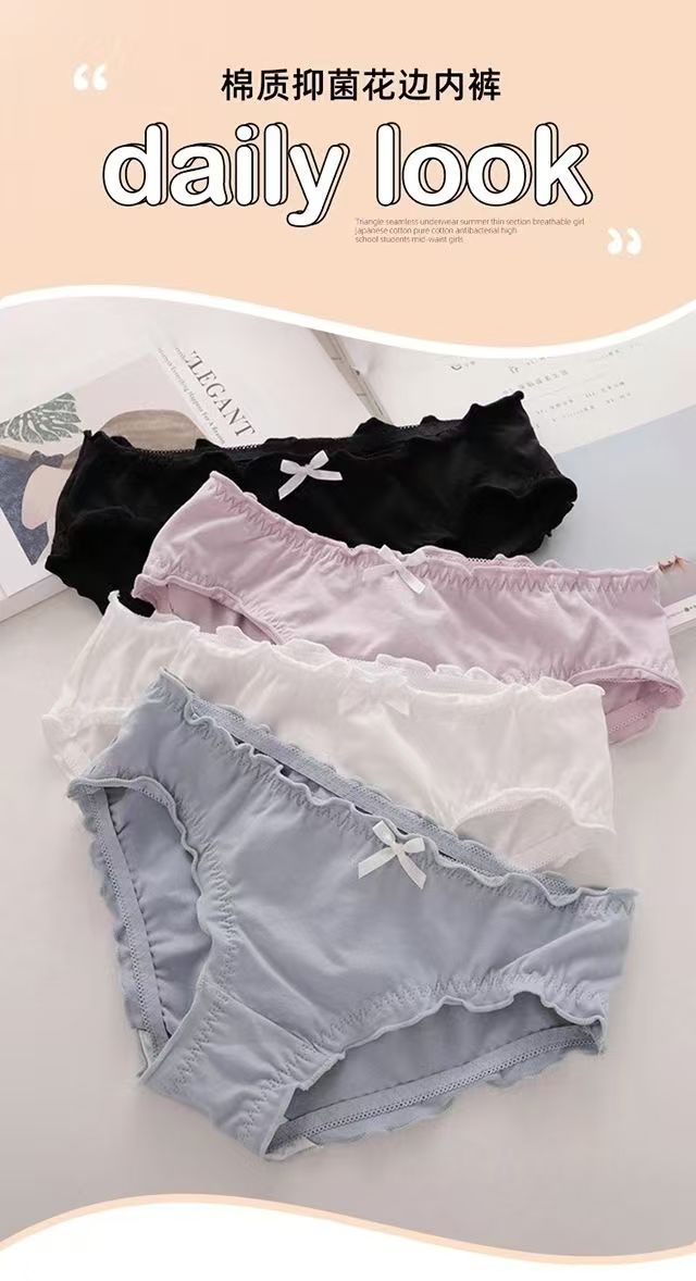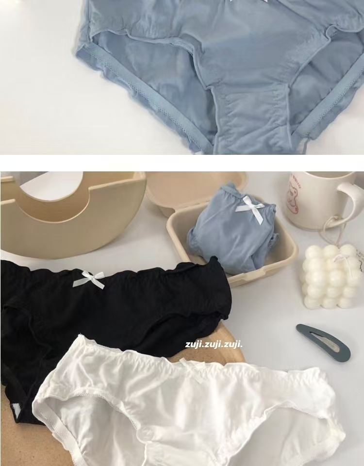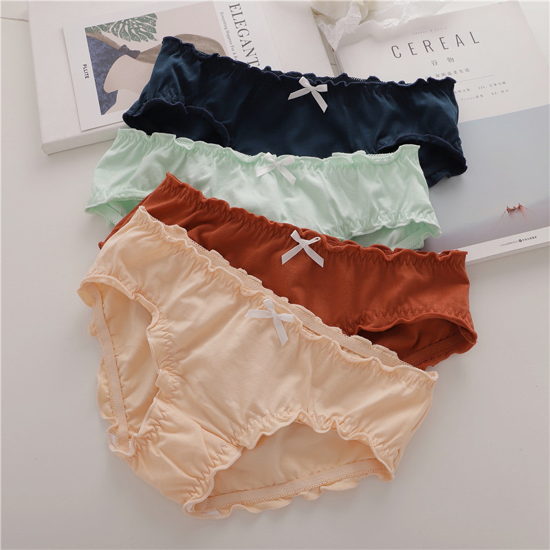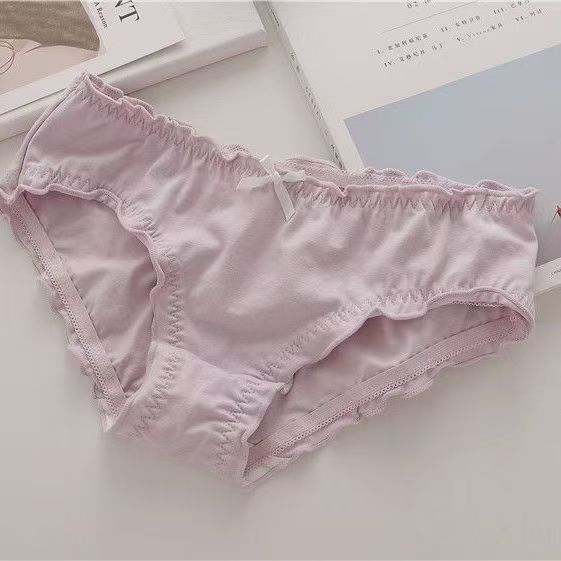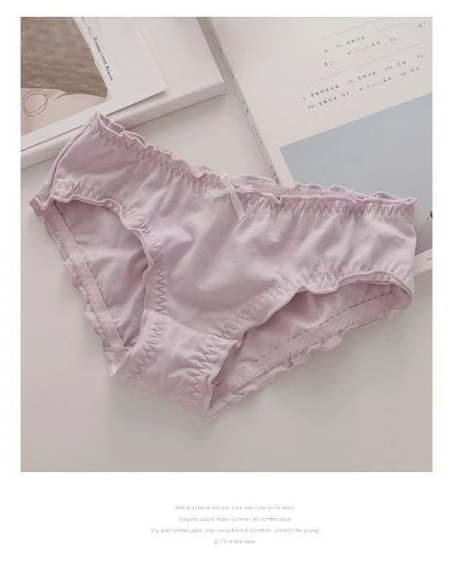 95 면 팬티 여성 낮은 허리 귀 가장자리 귀여운 간단한 일본 소녀 면 통기성 한국 스타일 학생들을 위한 브리프