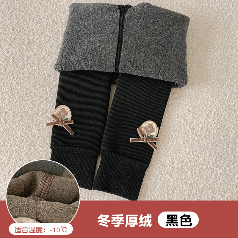 소녀 가을과 겨울 두꺼운 양말 겨울 외부 착용 얇은 벨벳 대형 아기 자수 활 9 점 어린이 레깅스