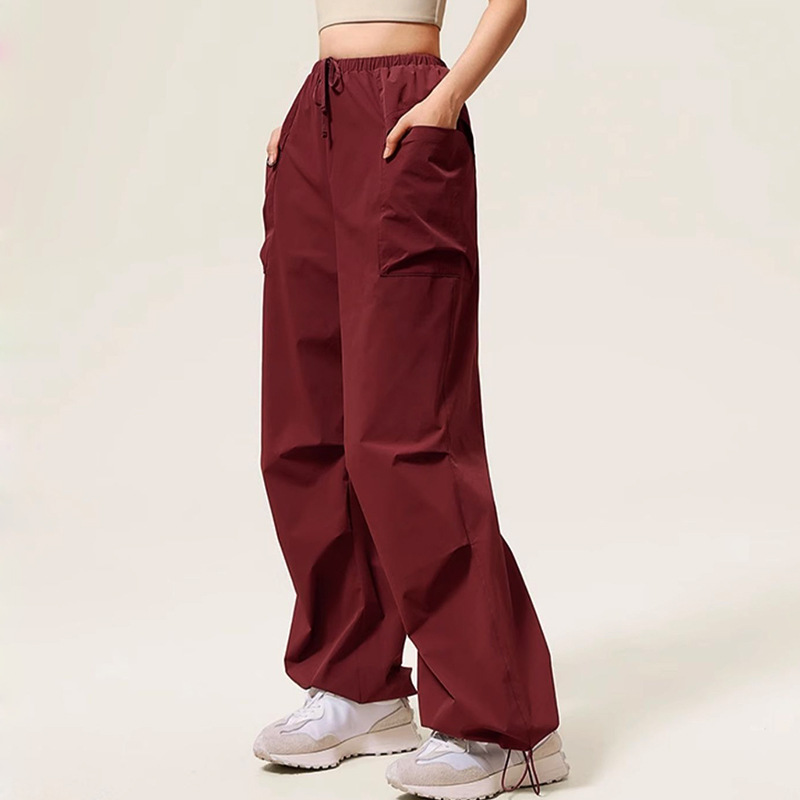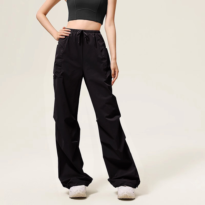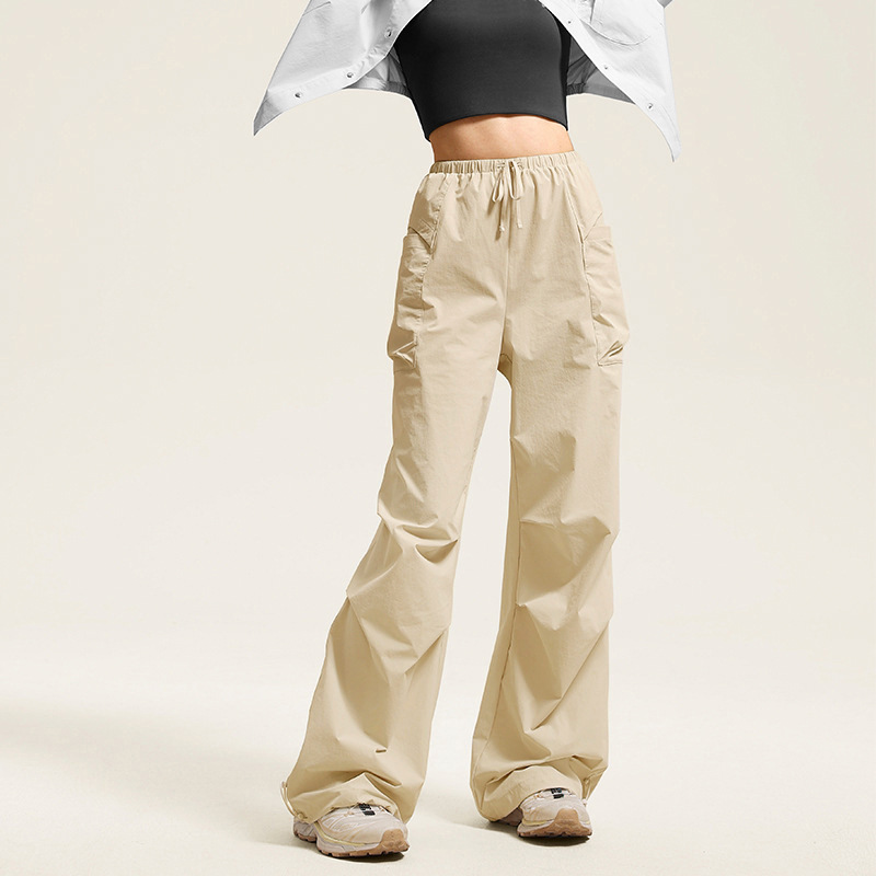 미국 스타일 드로우 스트링 크록 바지 캐주얼 스포츠 바지 여성 2024 가을 새로운 느슨한 야외 하이킹 바지