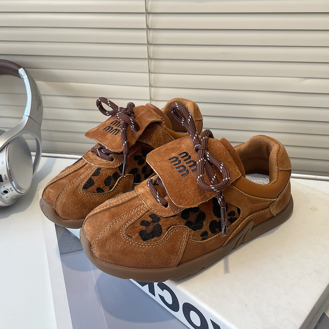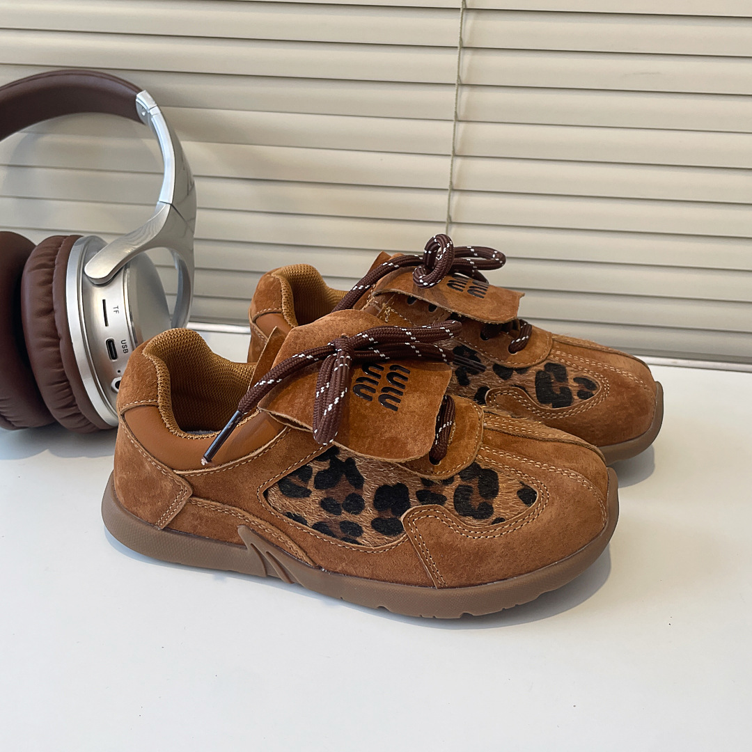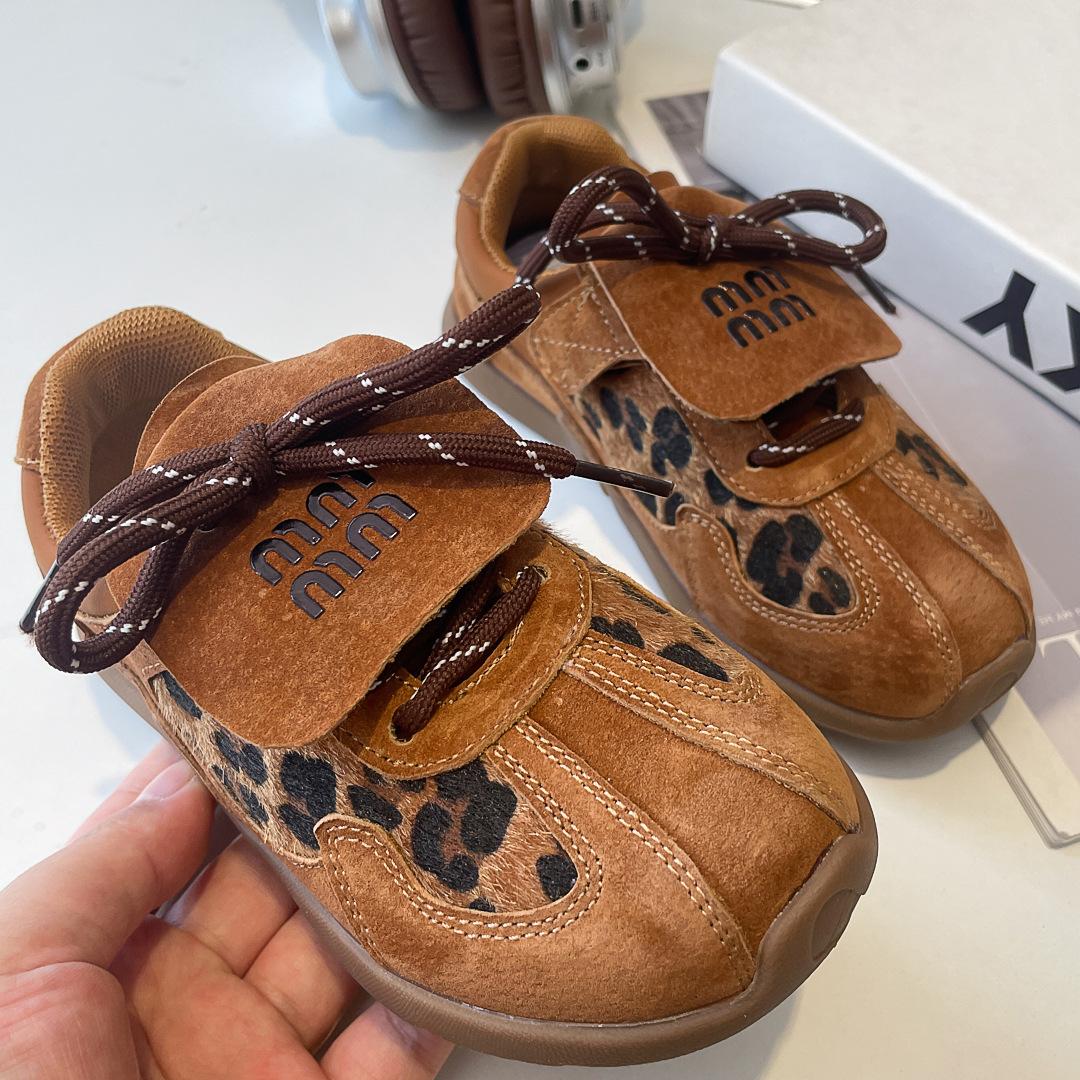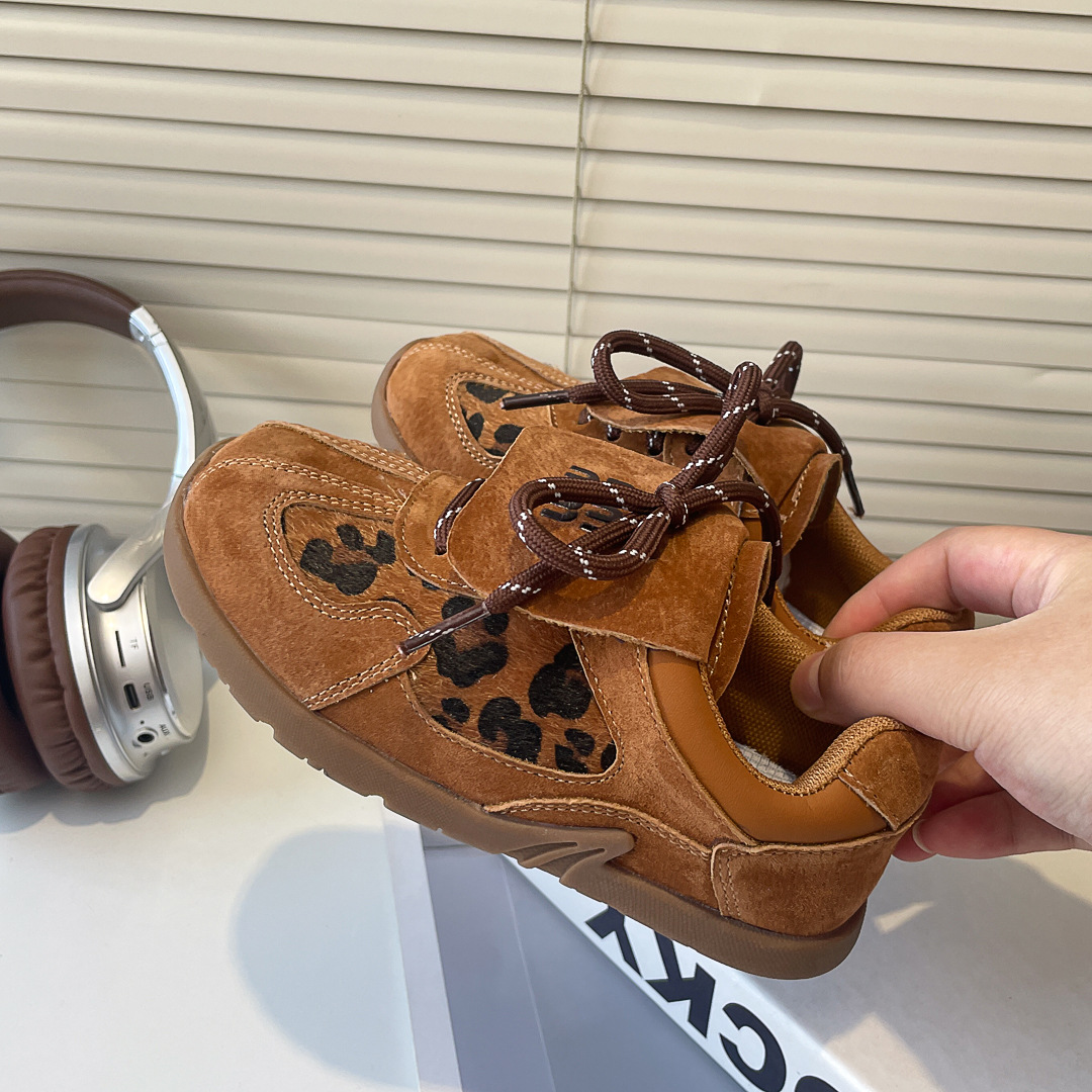 어린이 레오파드 프린트 데훈 신발 2024 가을 겨울 천연 가죽 여아 아가니 신발 캐주얼 남아 운동화 캐주얼 패션스토어 가기