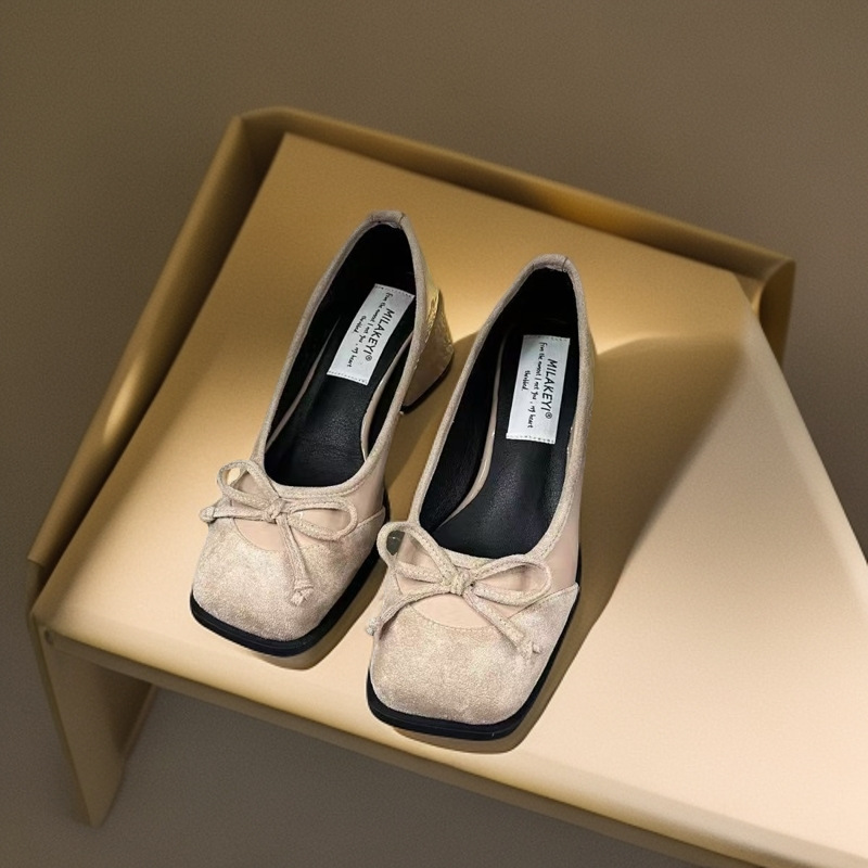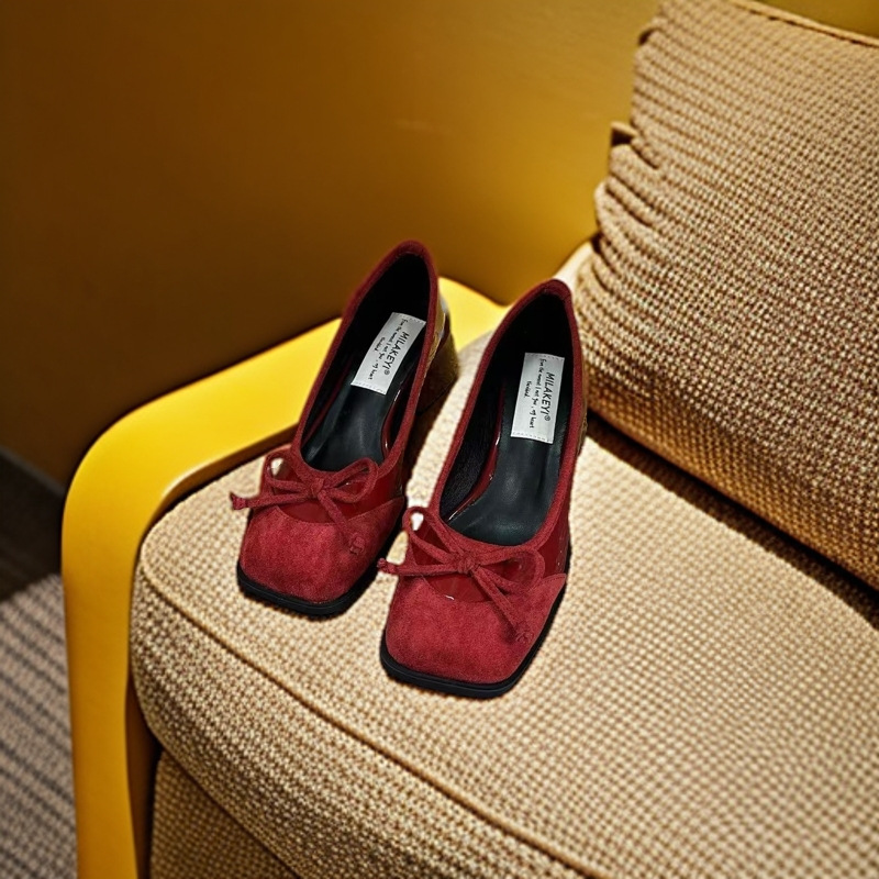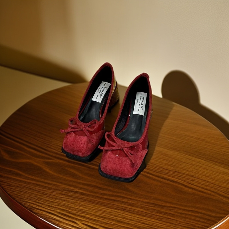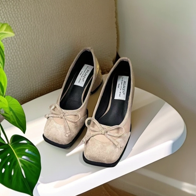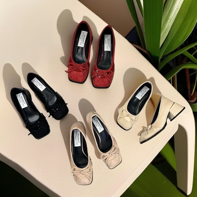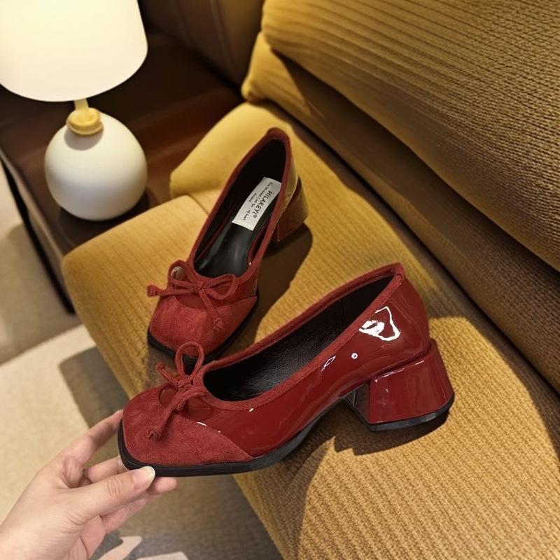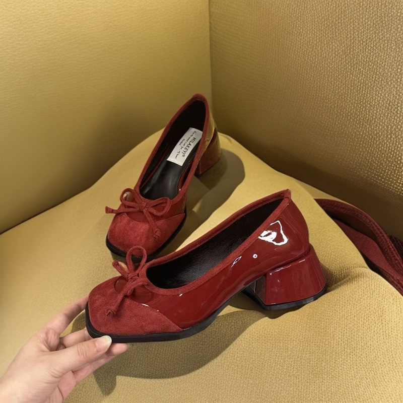 프랑스 스타일 메리 제인 신발 여성 가을 새로운 빈티지 두꺼운 힐 하이힐 활 얕은 입 싱글 신발 발레 신발 작은 가죽 신발