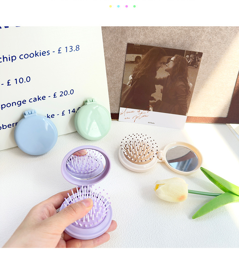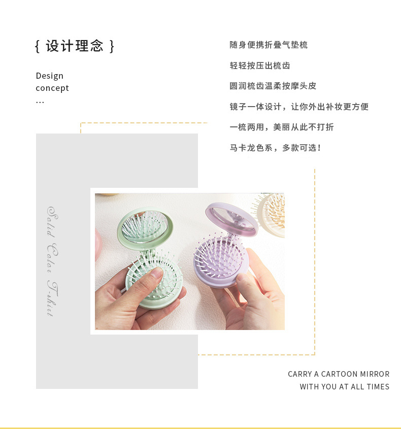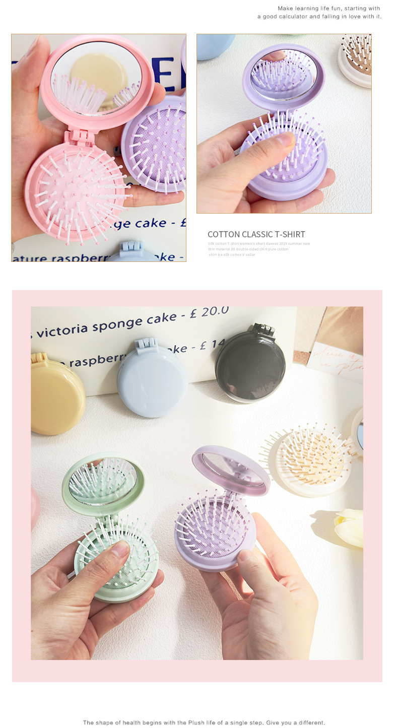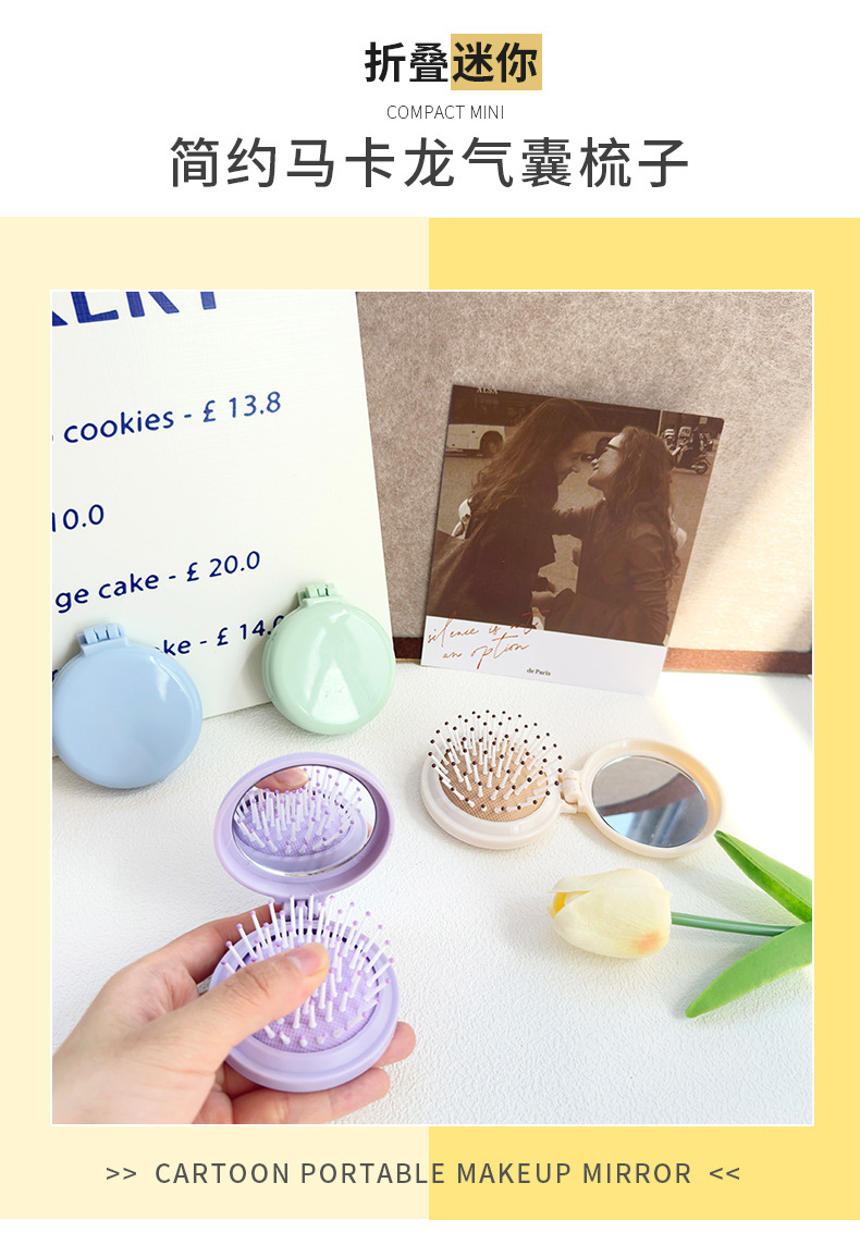 마사지 접이식 거울 빗 화장품 거울 작은 빗 포켓 휴대용 거울 빗 에어 쿠션 빗 소녀 마사지 에어백 빗
