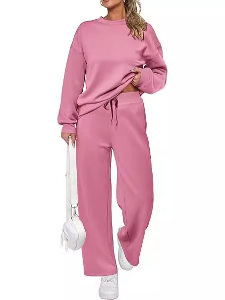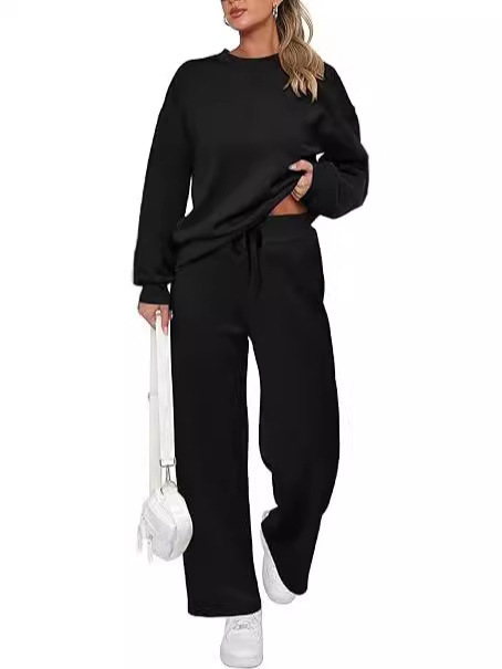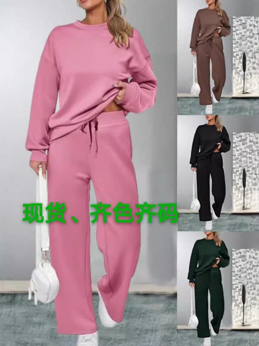 2024 국경을 넘는 유럽과 미국의 뜨거운 판매 니트 여성 투피스 세트 긴팔 탑 및 캐주얼 와이드 레그 포켓 바지 세트스토어 가기