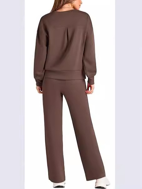 2024 국경을 넘는 유럽과 미국의 뜨거운 판매 니트 여성 투피스 세트 긴팔 탑 및 캐주얼 와이드 레그 포켓 바지 세트