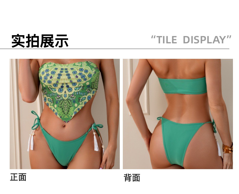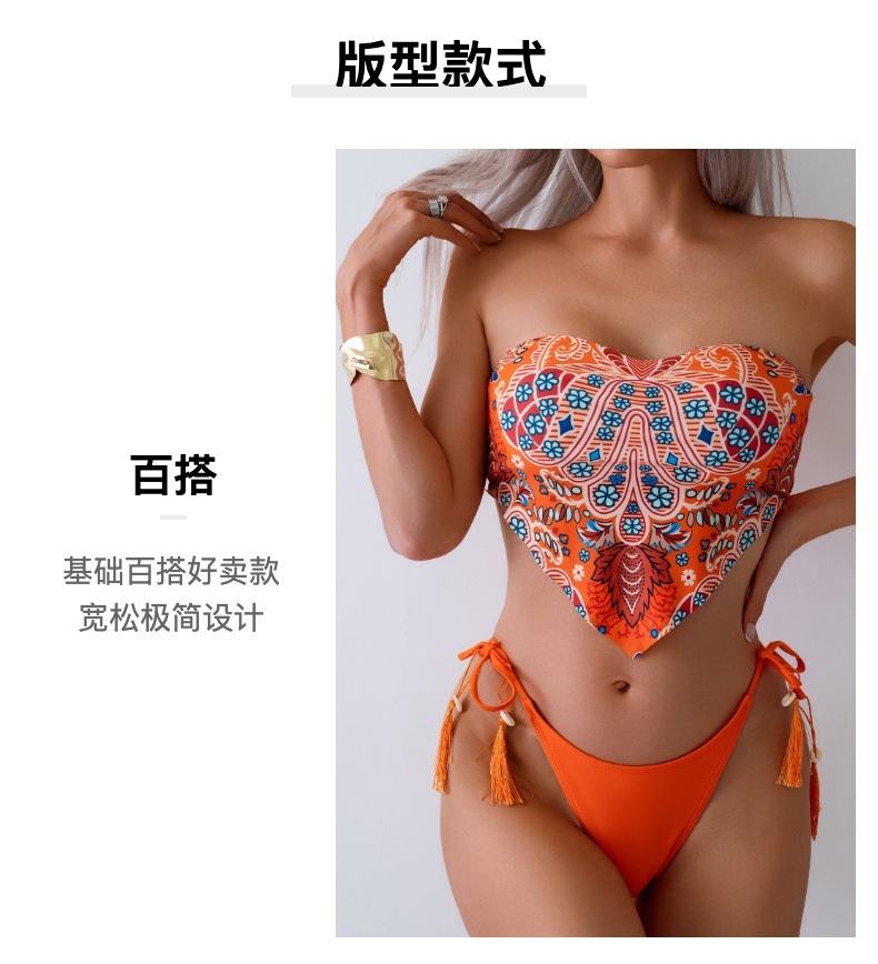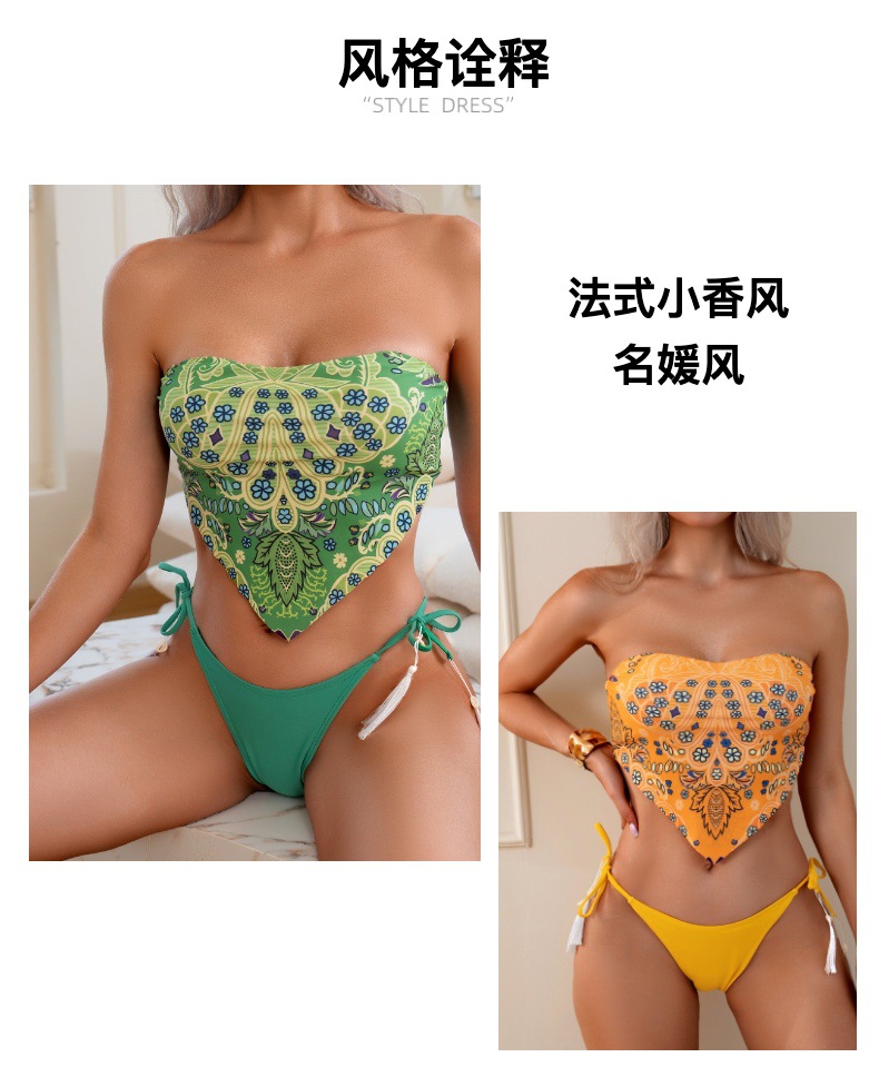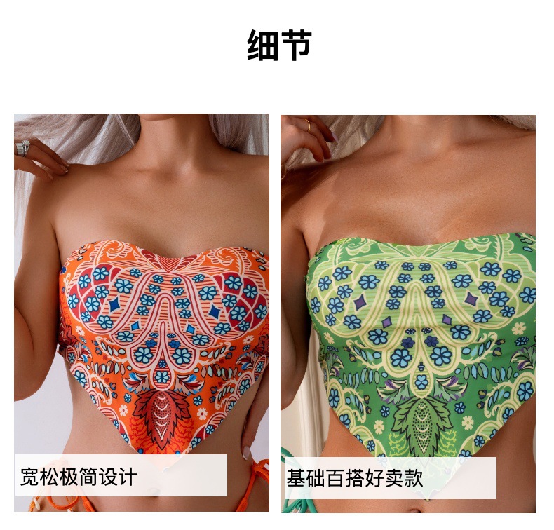 유럽과 미국의 새로운 스타일의 스트랩리스 비키니, 배꼽 노출형 수영복, 프린트 섹시 분리형 수영복, 여성용 해외 무역스토어 가기