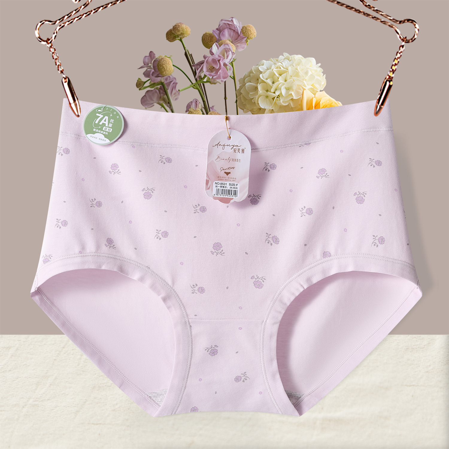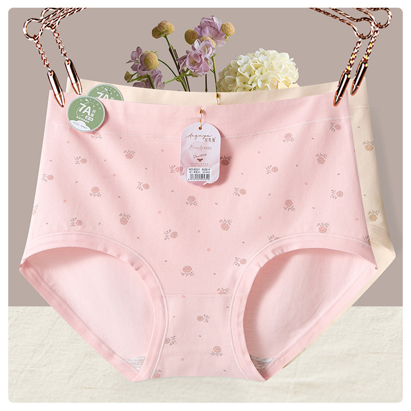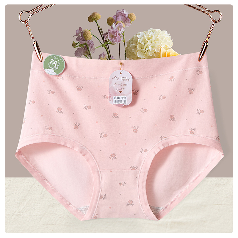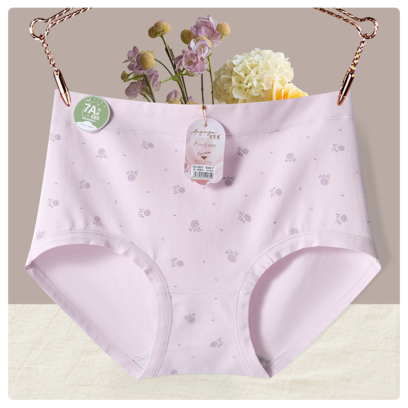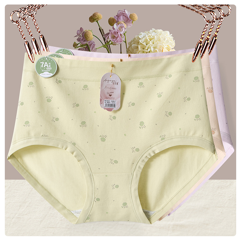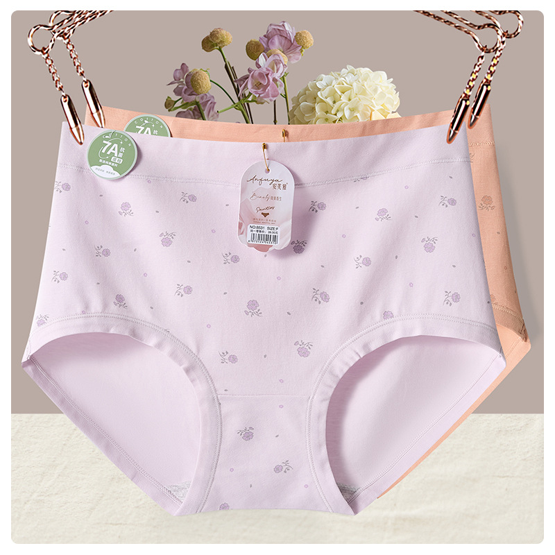 여성의 중간 높이의 허리 속옷은면 피부 친화적 인 통기성 7A 항균 가랑이 꽃 신선한 부드러운 삼각형 반바지 머리를 빗었습니다.