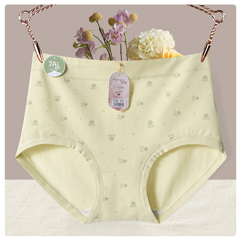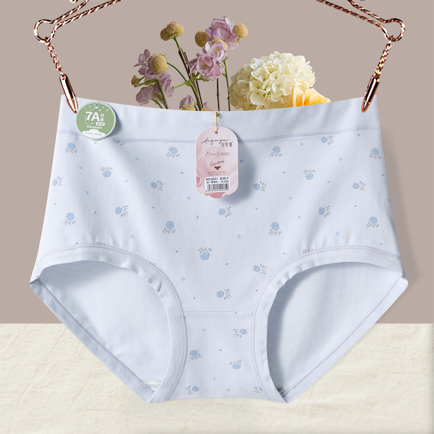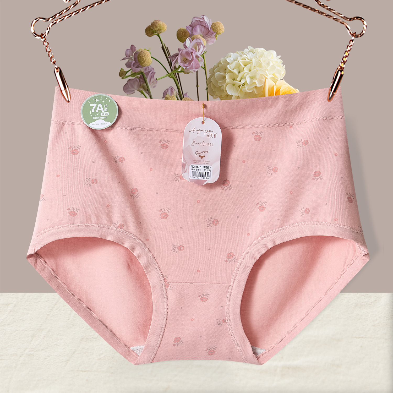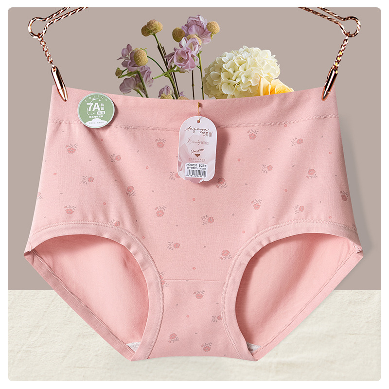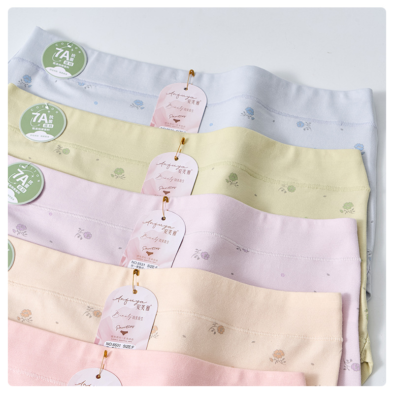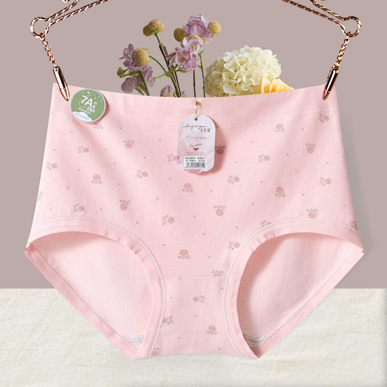 여성의 중간 높이의 허리 속옷은면 피부 친화적 인 통기성 7A 항균 가랑이 꽃 신선한 부드러운 삼각형 반바지 머리를 빗었습니다.