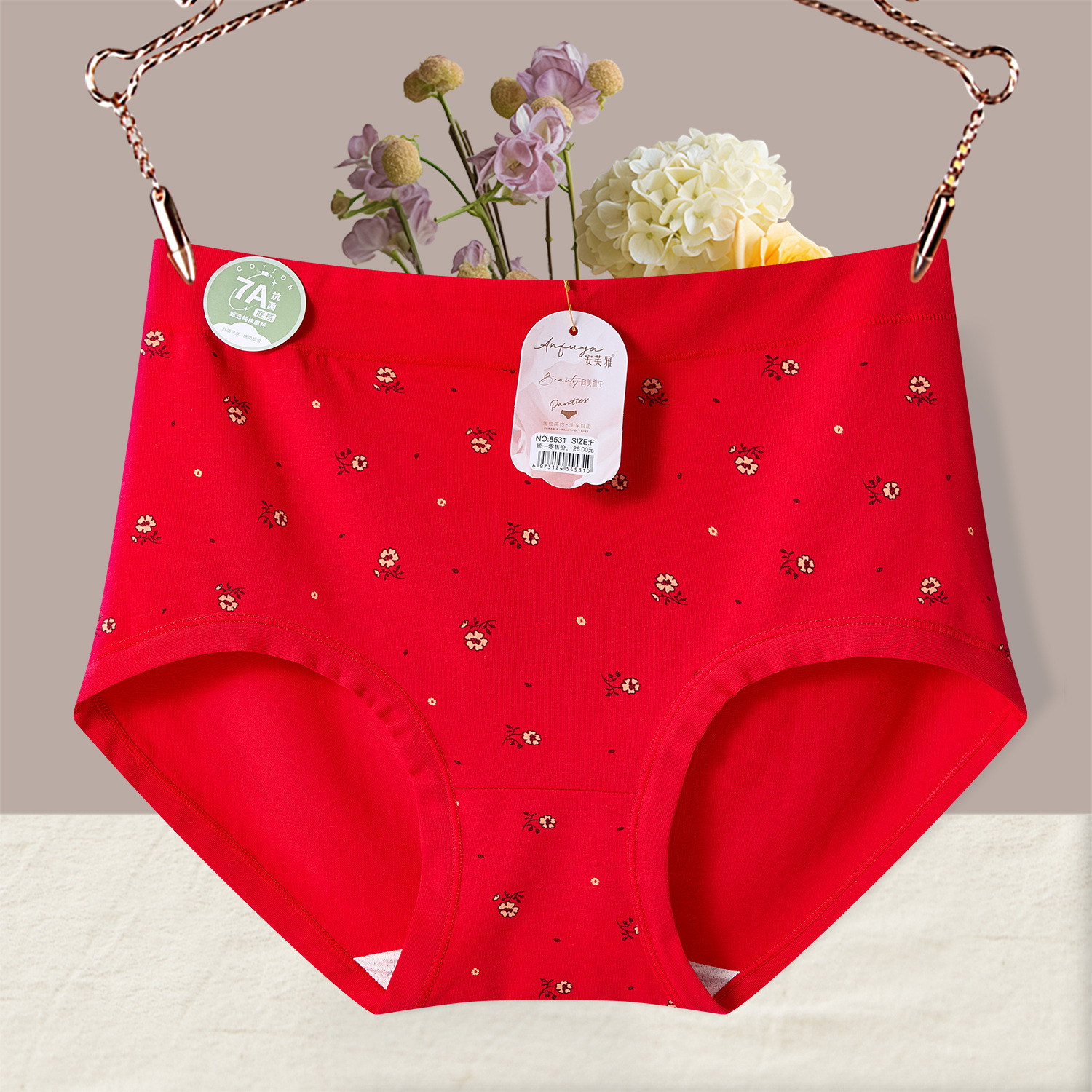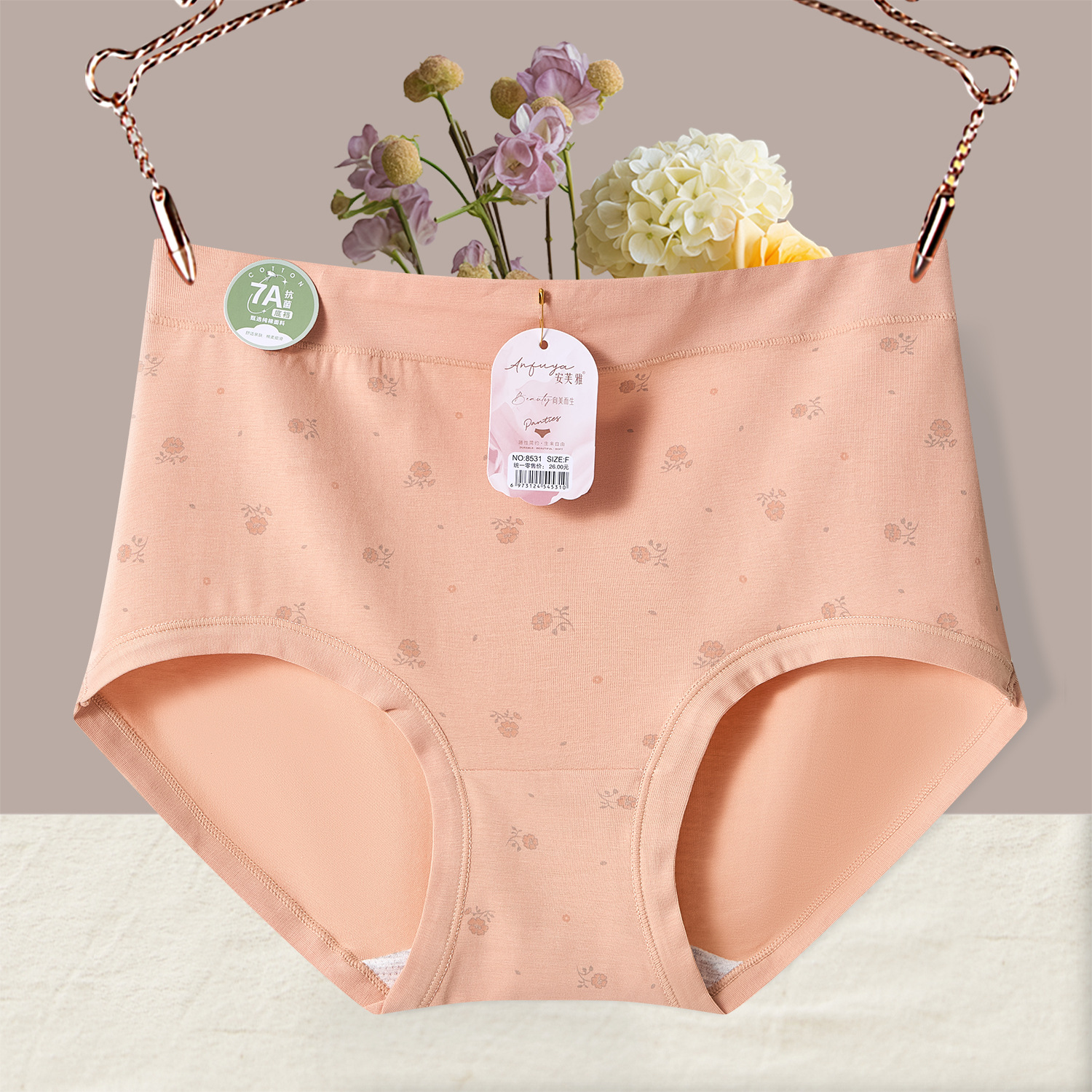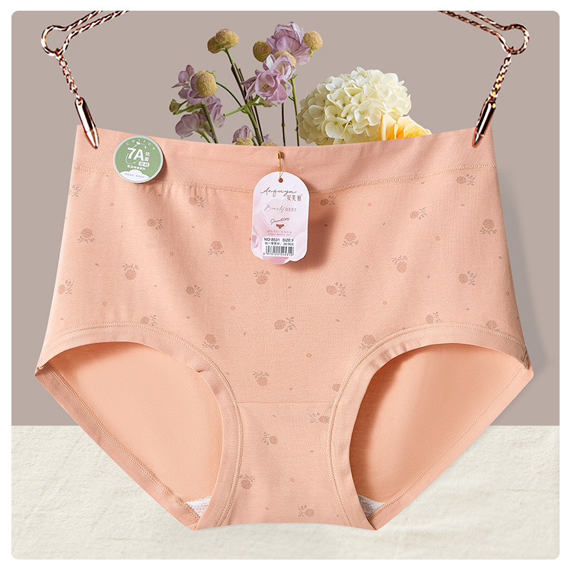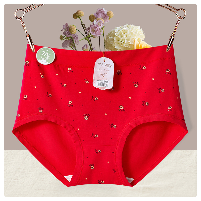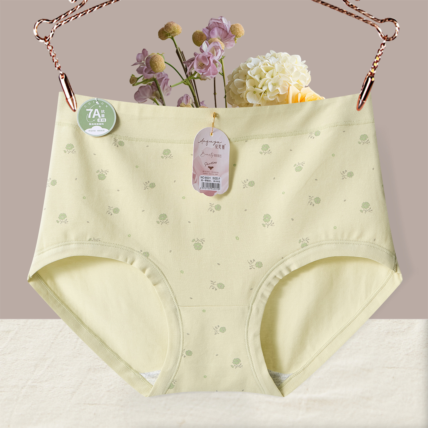 여성의 중간 높이의 허리 속옷은면 피부 친화적 인 통기성 7A 항균 가랑이 꽃 신선한 부드러운 삼각형 반바지 머리를 빗었습니다.