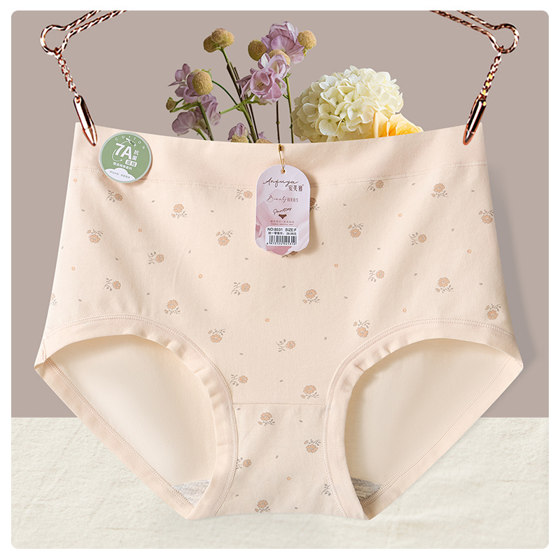 여성의 중간 높이의 허리 속옷은면 피부 친화적 인 통기성 7A 항균 가랑이 꽃 신선한 부드러운 삼각형 반바지 머리를 빗었습니다.스토어 가기