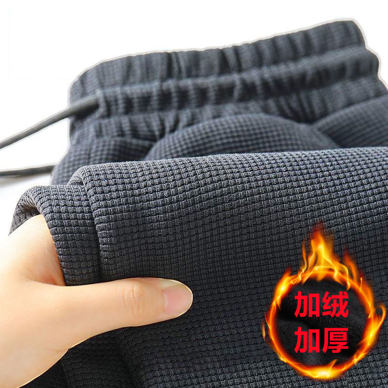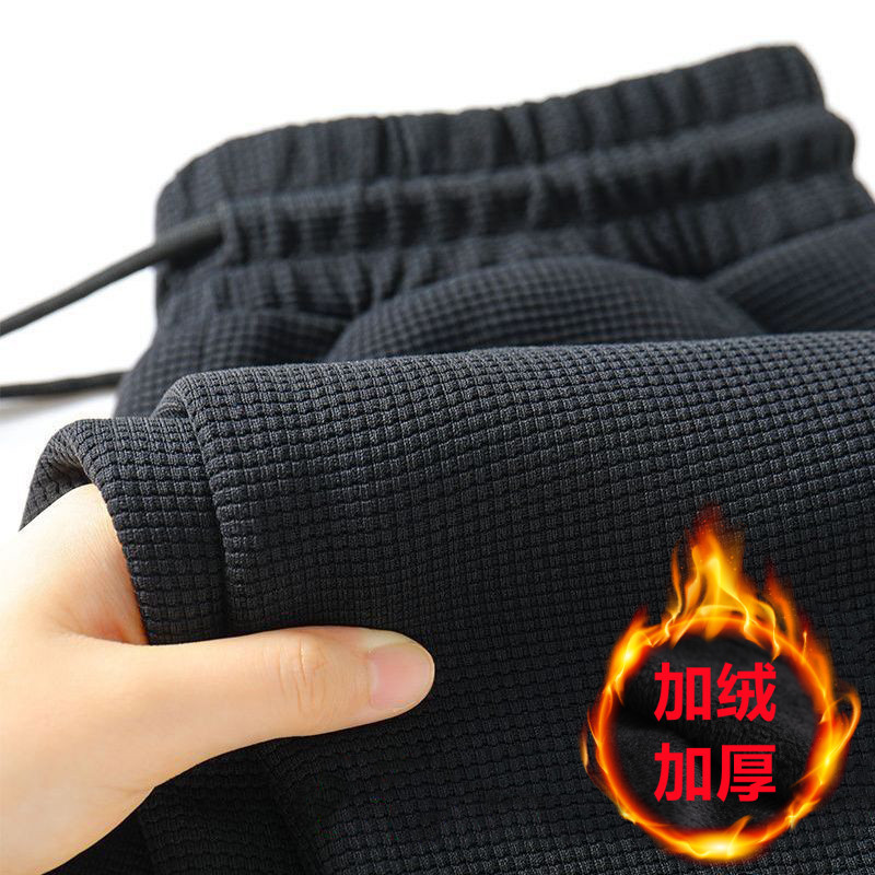 Wei Pants 남자 2024 봄과 가을 새 플러스 사이즈 느슨한 스트레이트 와플 바지 겨울 기모 캐주얼 바지