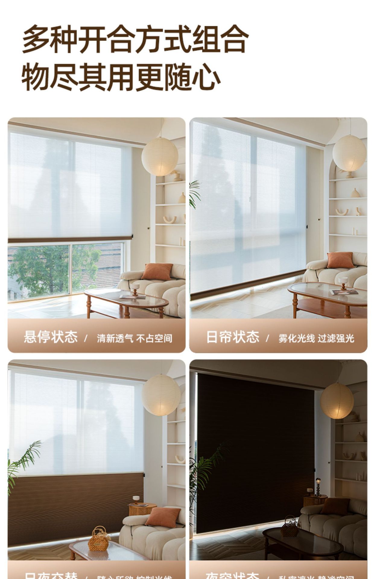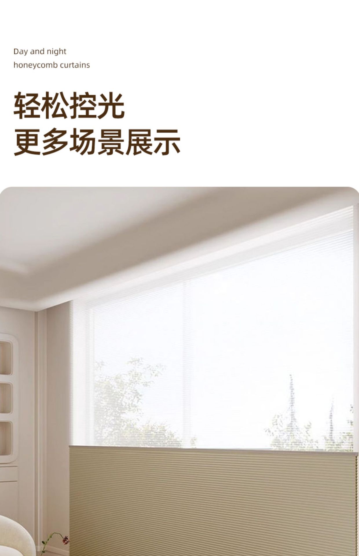 전기 낮과 밤 커튼 벌집 커튼 내부 창 임베디드 차양 침실 태양 보호 및 단열 셔터 지능형 벌집 커튼스토어 가기