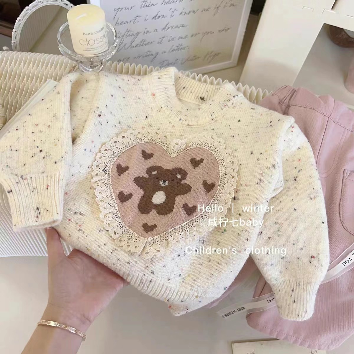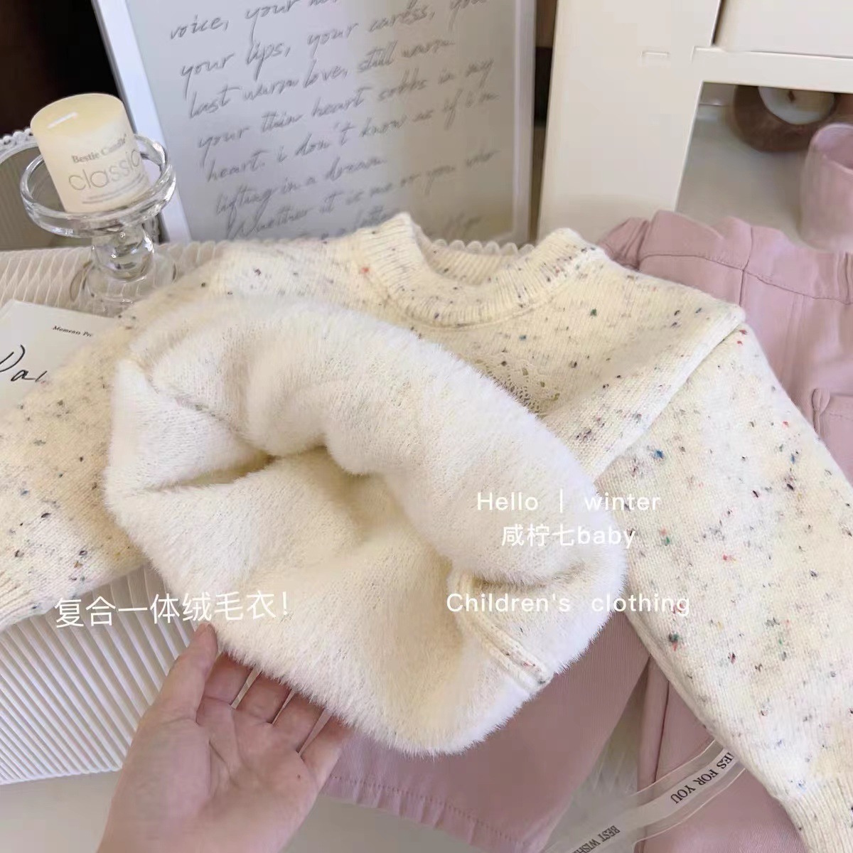 소녀들의 기모 스웨터 베이비 러브 원피스 캐시미어 두꺼운 니트 스웨터베이스 레이어 셔츠 어린이 겨울 따뜻한 탑