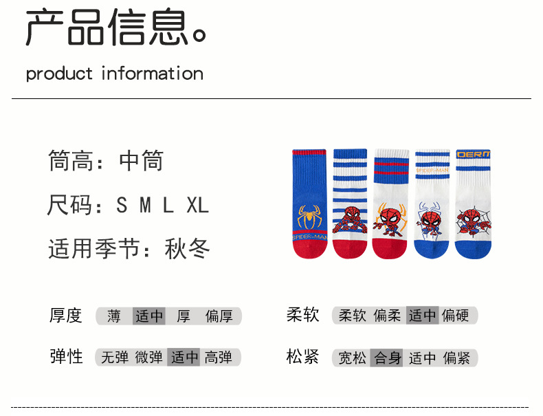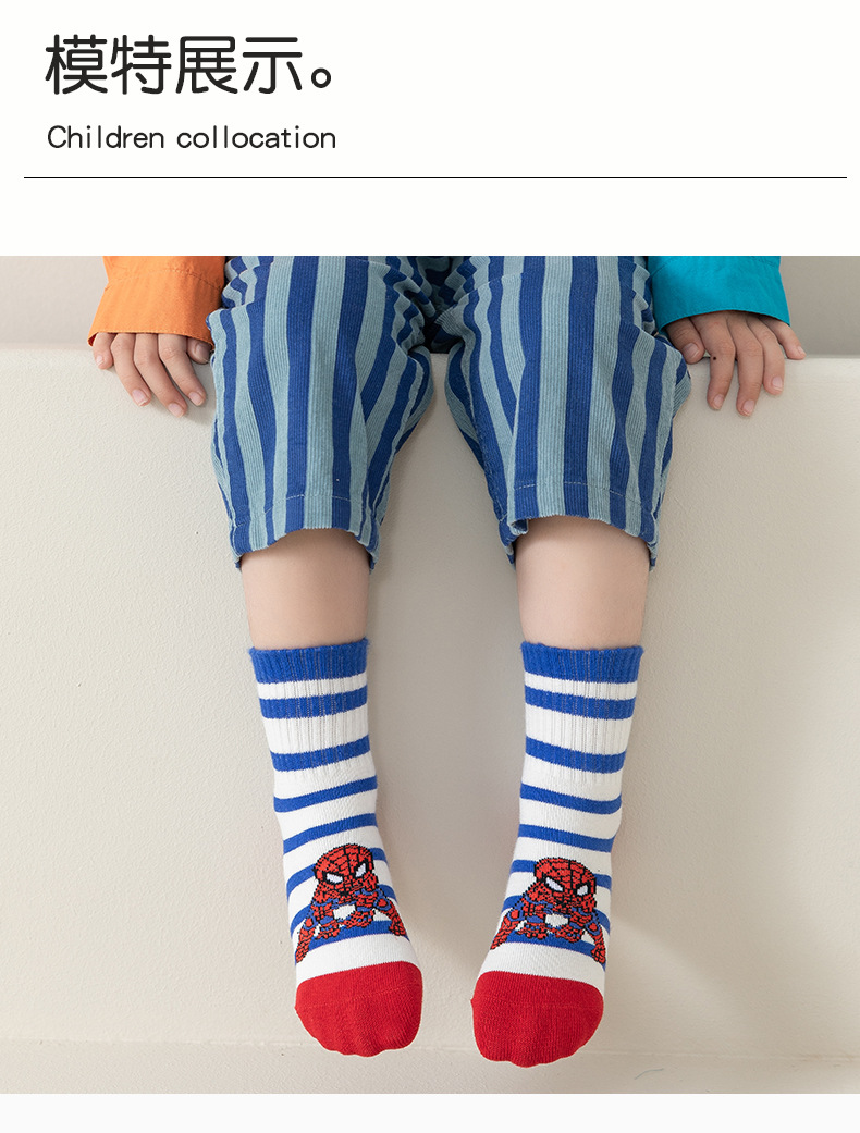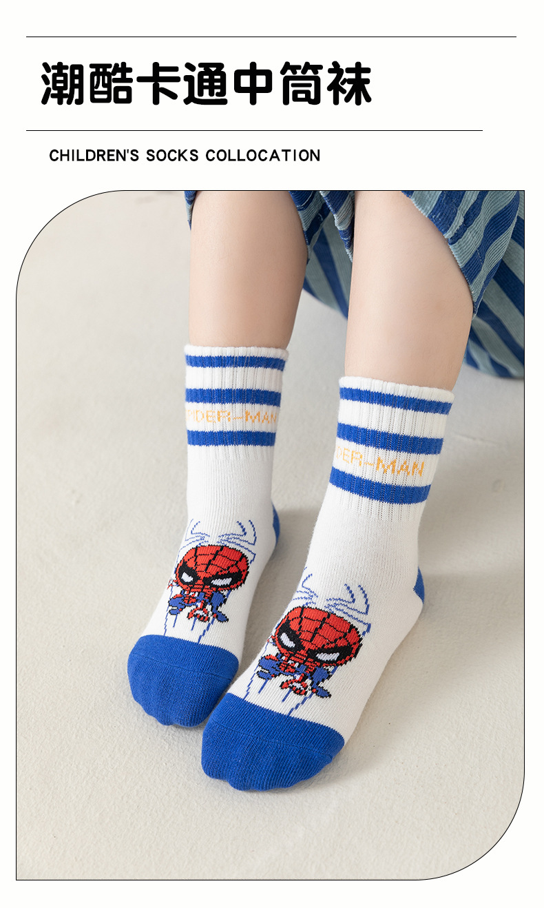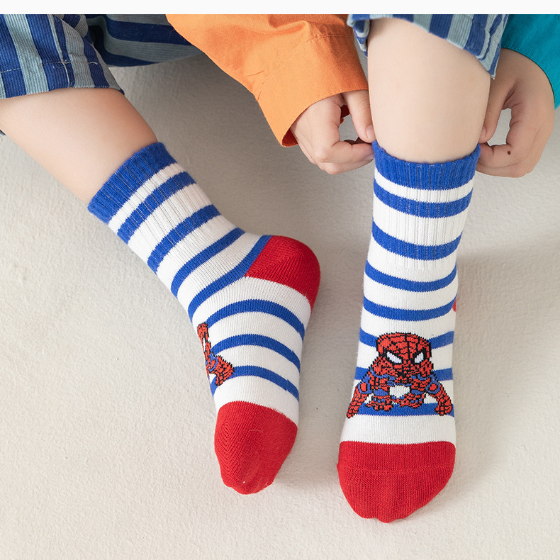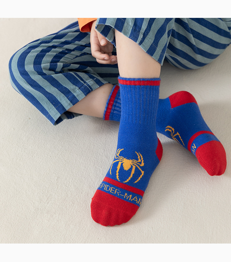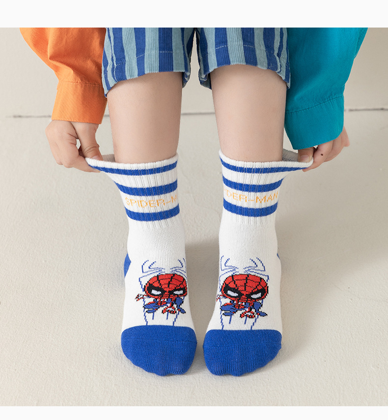 소년 양말 봄과 가을 한국 버전의 어린이 만화 스파이더 맨 미드 튜브 양말 가을 남성 아기 스포츠 양말 제조 업체 도매
