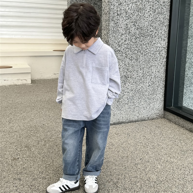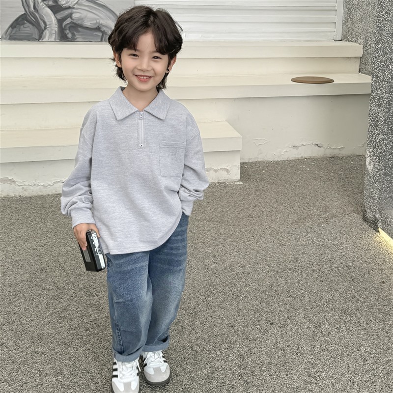 2024 Haima 가족 가을 새로운 어린이 소년 한국면 긴팔 티셔츠 어린이 POLO 셔츠 옷 가을 옷스토어 가기