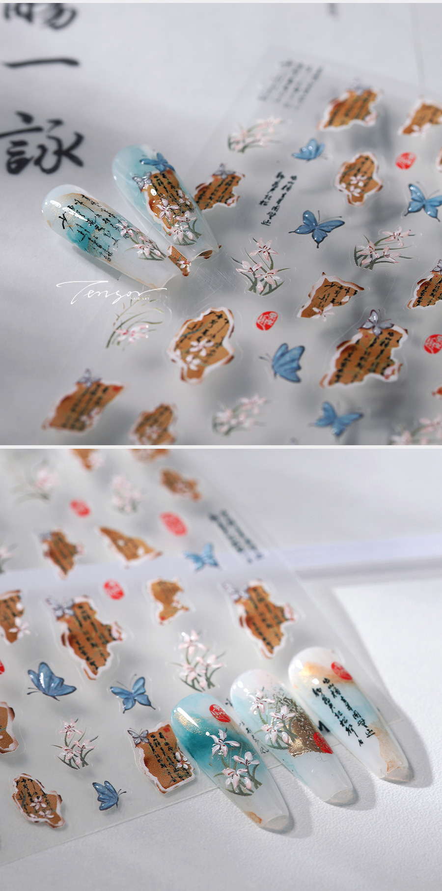 TENSOR 신기술 얇은 블레이드 네일 아트 스티커 새로운 중국 골동품 접착 네일 아트 스티커 젤리 젤 시리즈 M-696스토어 가기