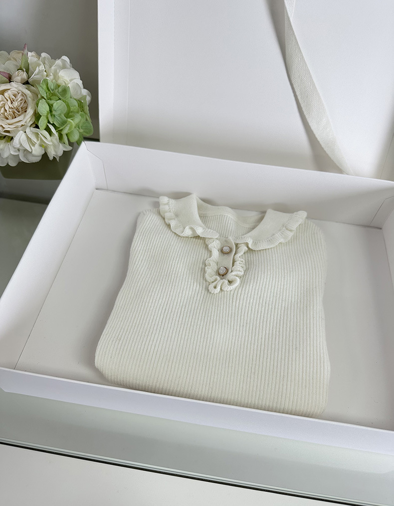 겨울 새로운 도착 귀 옷깃베이스 셔츠 절묘한 구덩이 스트립 소녀 스웨터 메리노 울 니트웨어 어린이를위한스토어 가기