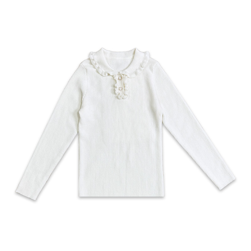 겨울 새로운 도착 귀 옷깃베이스 셔츠 절묘한 구덩이 스트립 소녀 스웨터 메리노 울 니트웨어 어린이를위한