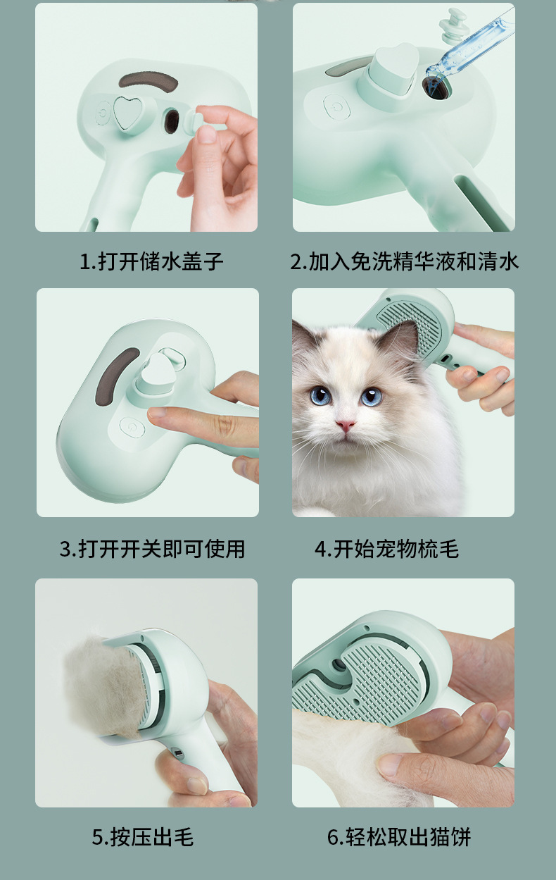 국경 간 애완 동물 스프레이 헤어 빗 고양이 개 헤어 빗 떠있는 헤어 원 버튼 스프레이 마사지 뷰티 애완 동물 빗스토어 가기