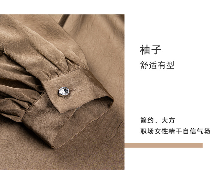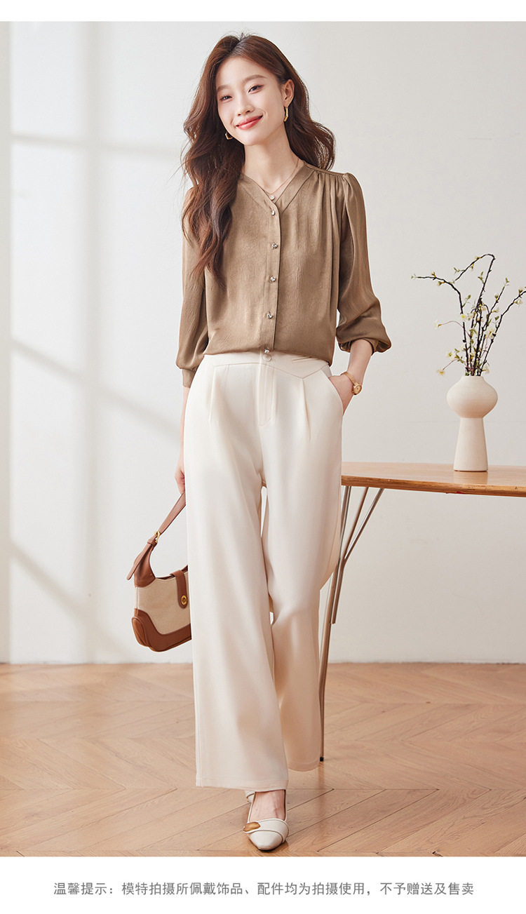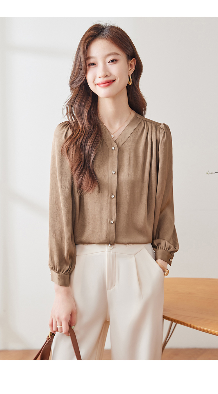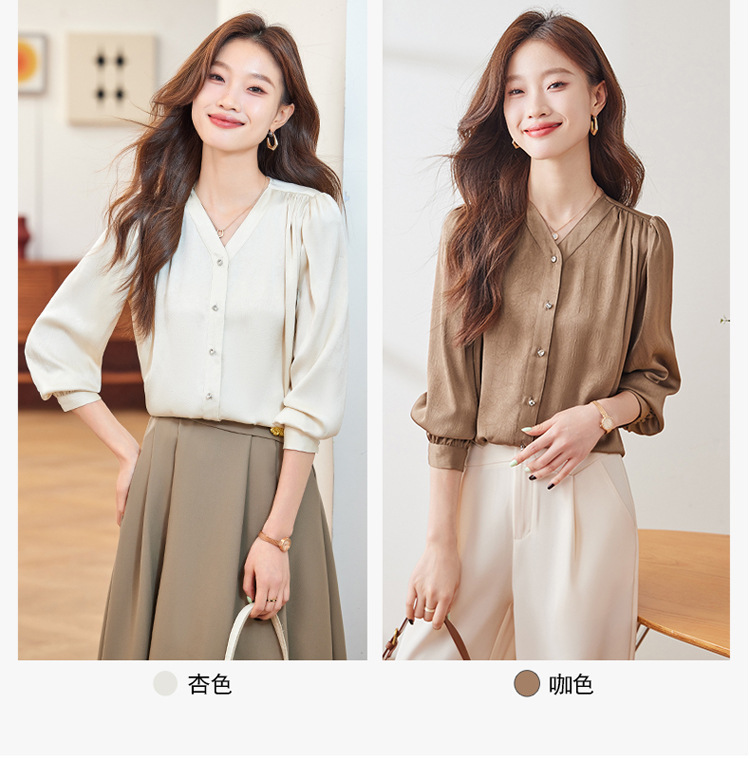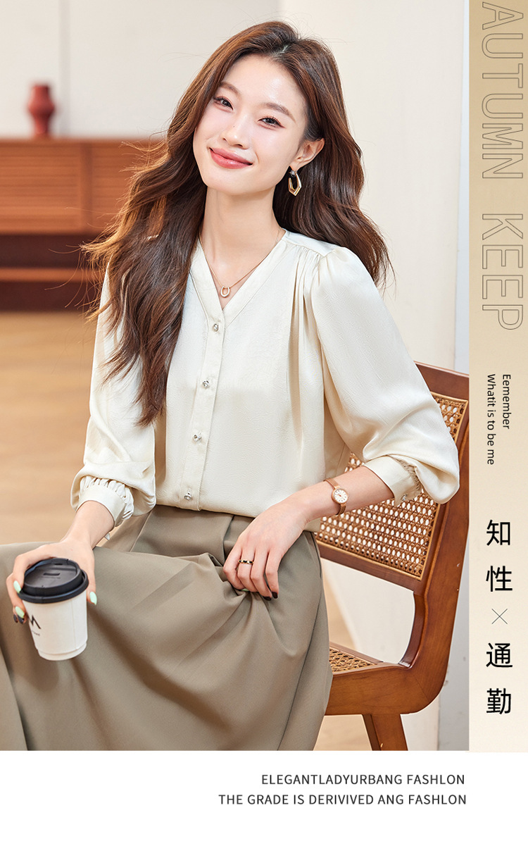 직장 통근 살구색 여성 셔츠 봄과 가을 2024 새로운 패션 올 매치 셔츠 세트 내부 우아한 탑