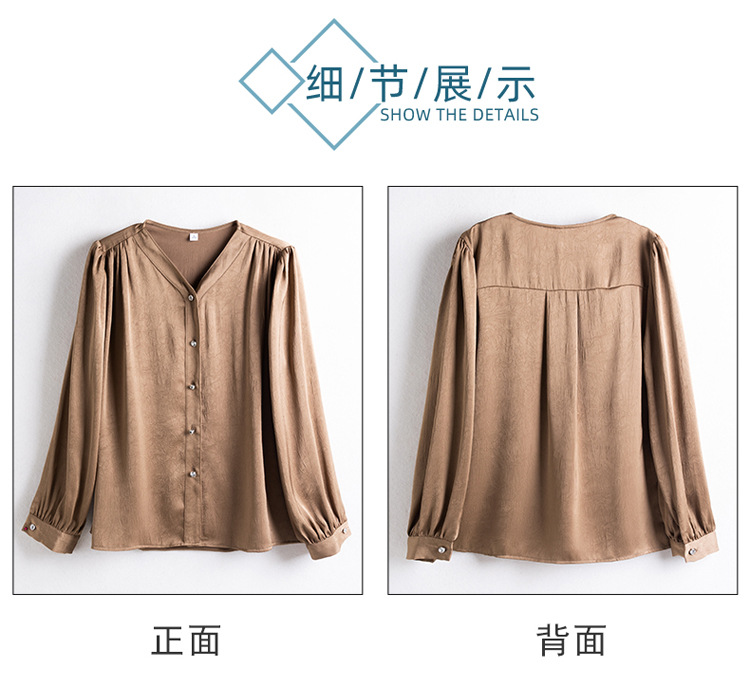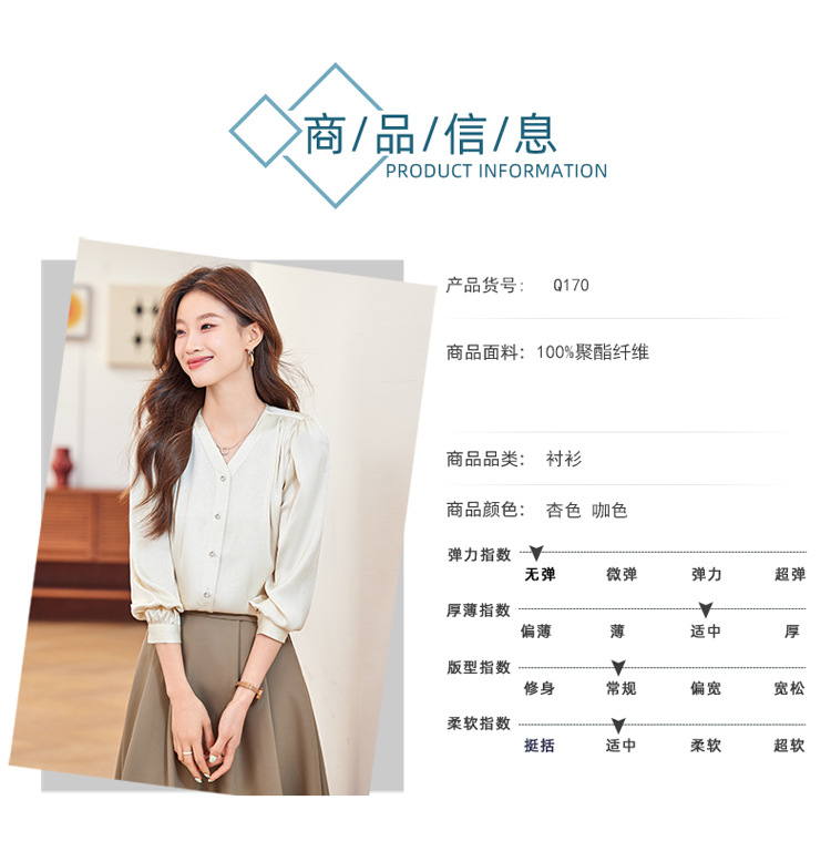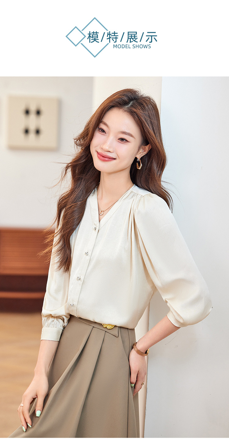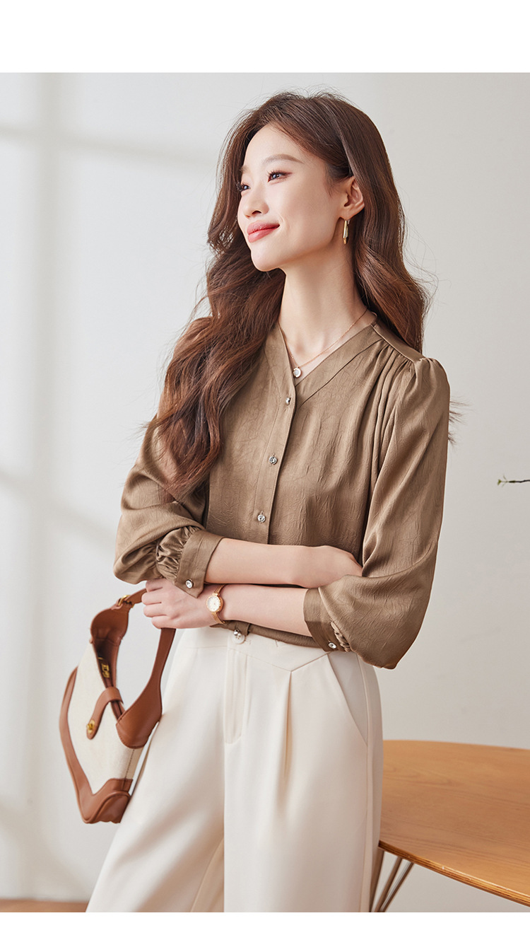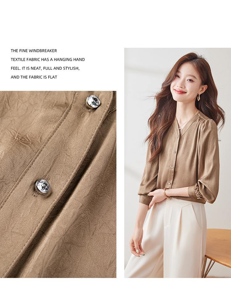 직장 통근 살구색 여성 셔츠 봄과 가을 2024 새로운 패션 올 매치 셔츠 세트 내부 우아한 탑