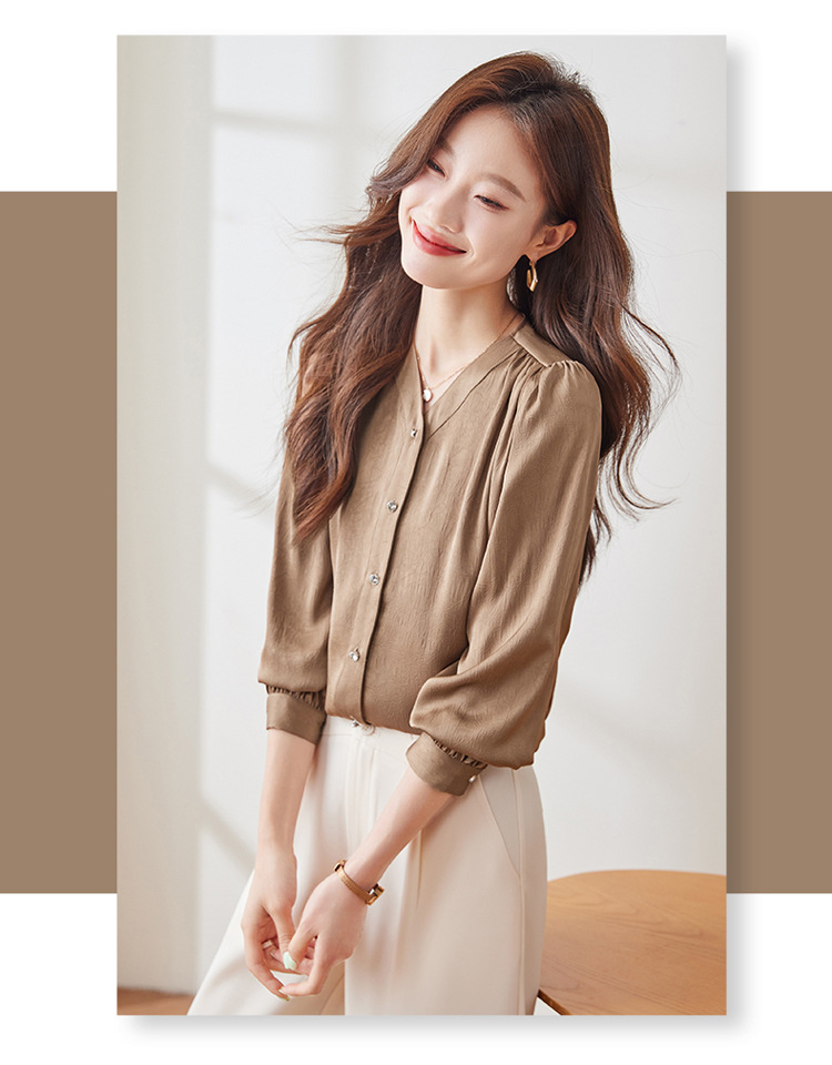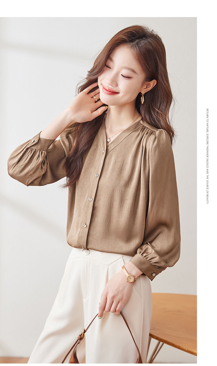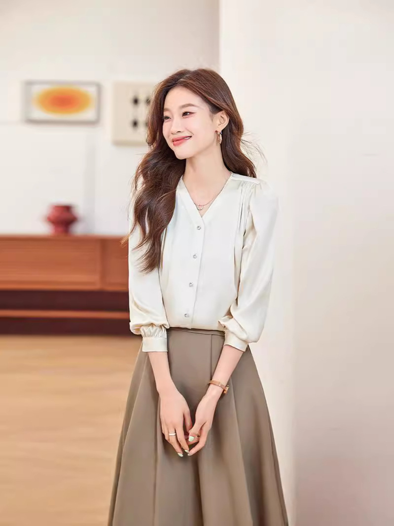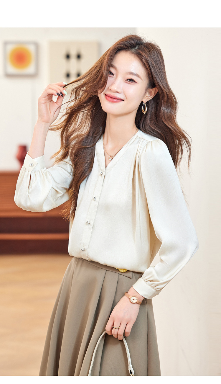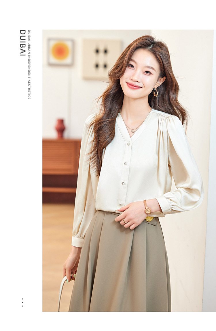 직장 통근 살구색 여성 셔츠 봄과 가을 2024 새로운 패션 올 매치 셔츠 세트 내부 우아한 탑스토어 가기