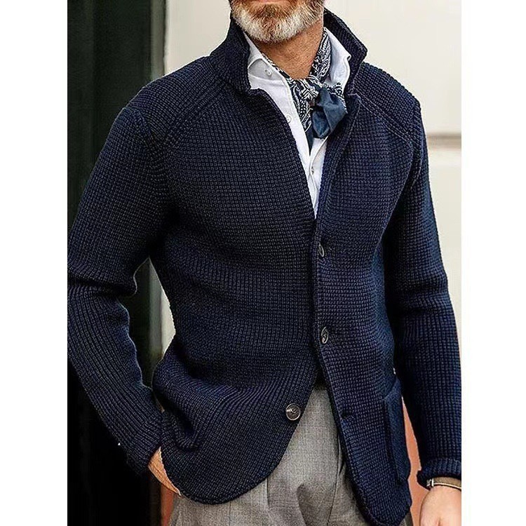 유럽과 미국의 국경 간 가을과 겨울 대외 무역 스웨터 남자의 두꺼운 니트 스웨터 슬림 핏 수직 칼라 니트 스웨터 가을과 겨울 코트 재고스토어 가기
