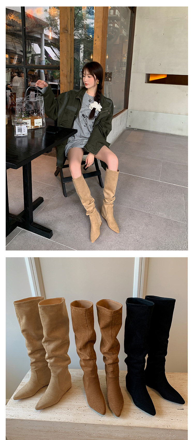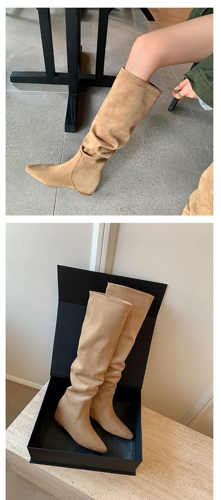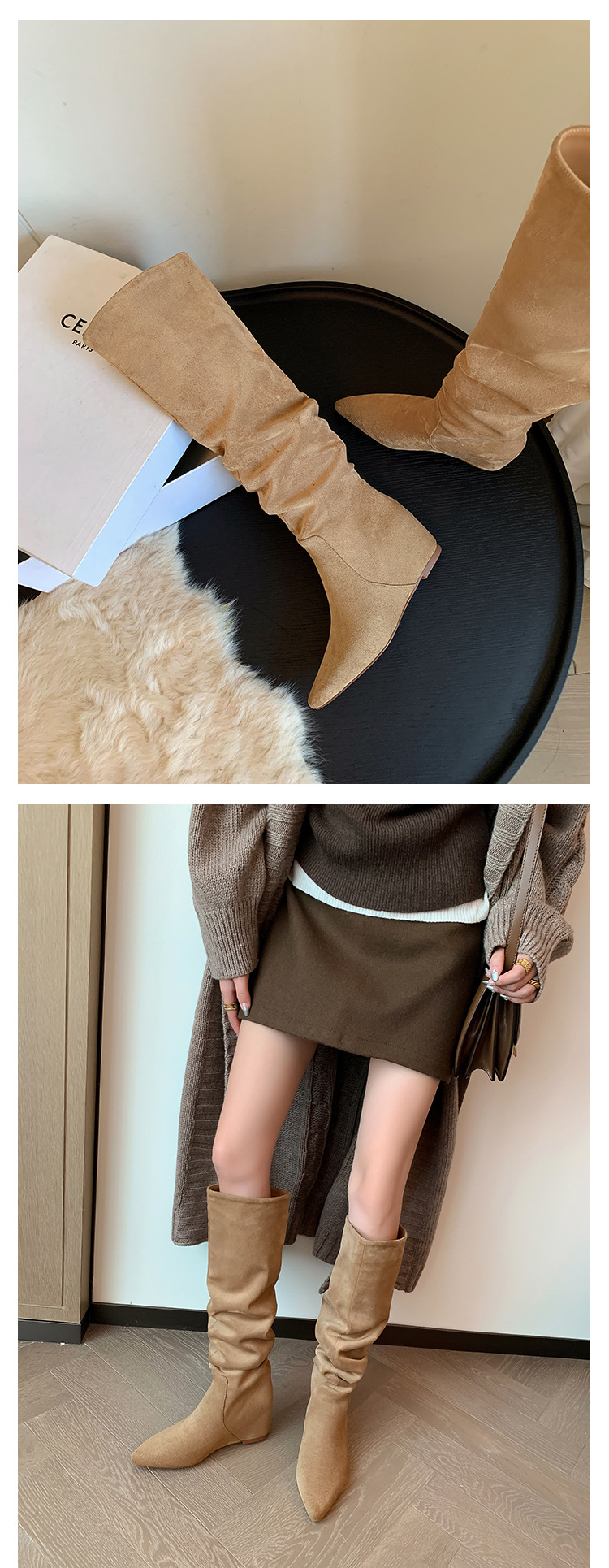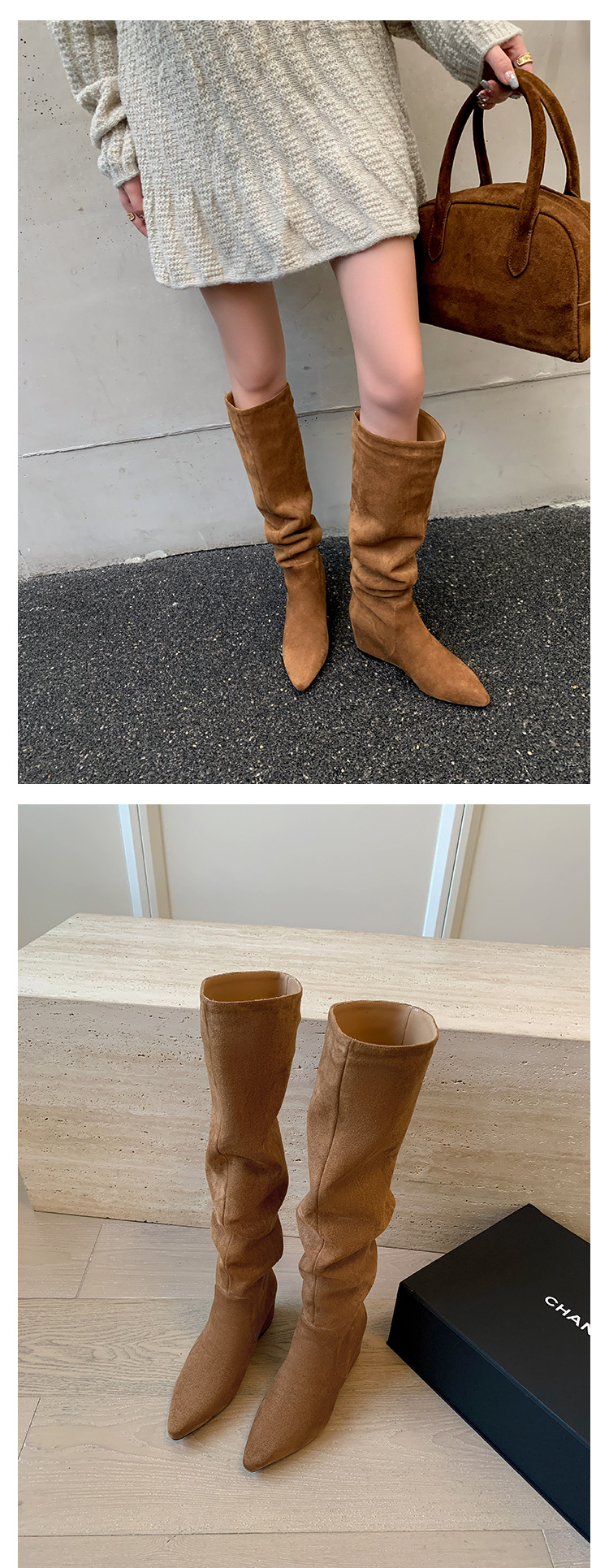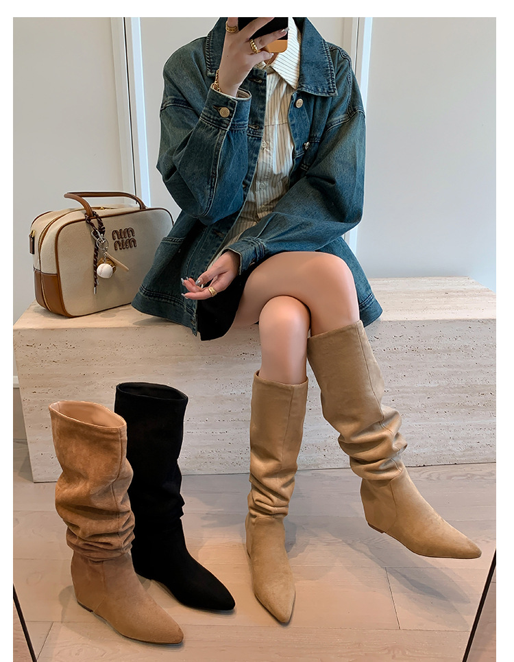 길고 높은 6cm ~ 작은 뾰족한 높이 Maillard 부츠 스웨이드 넓은 파일 부츠 이른 가을 부츠 여성스토어 가기
