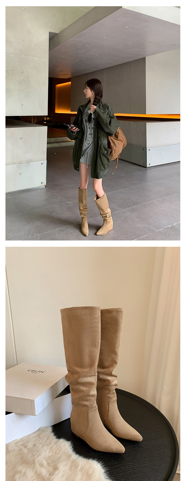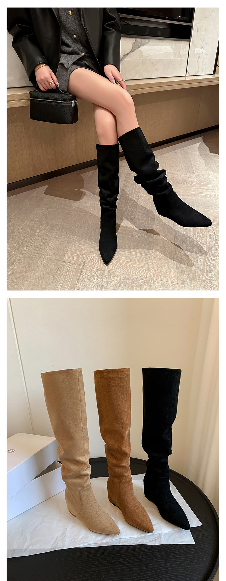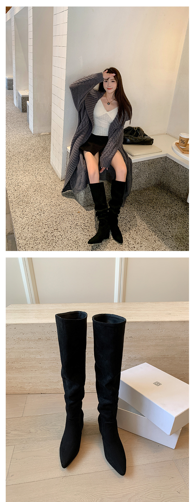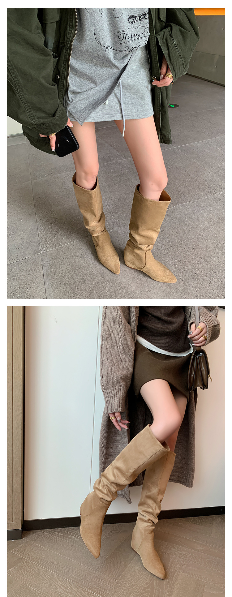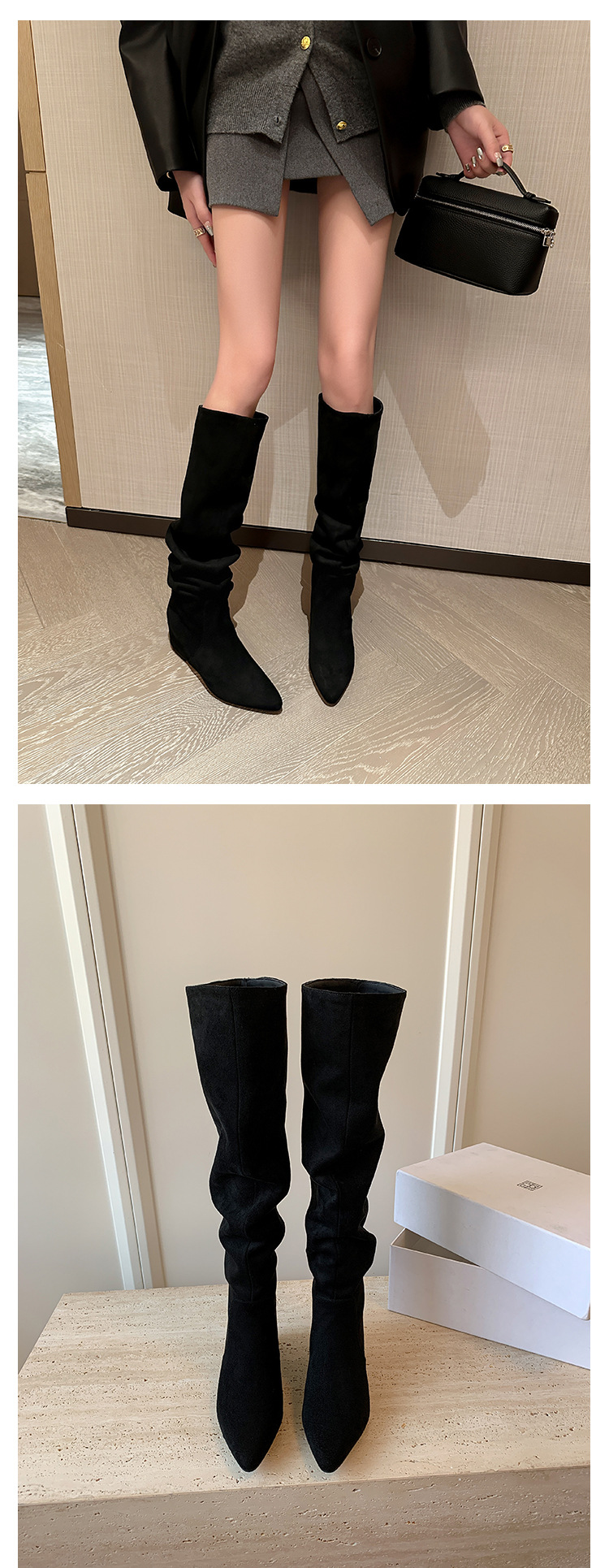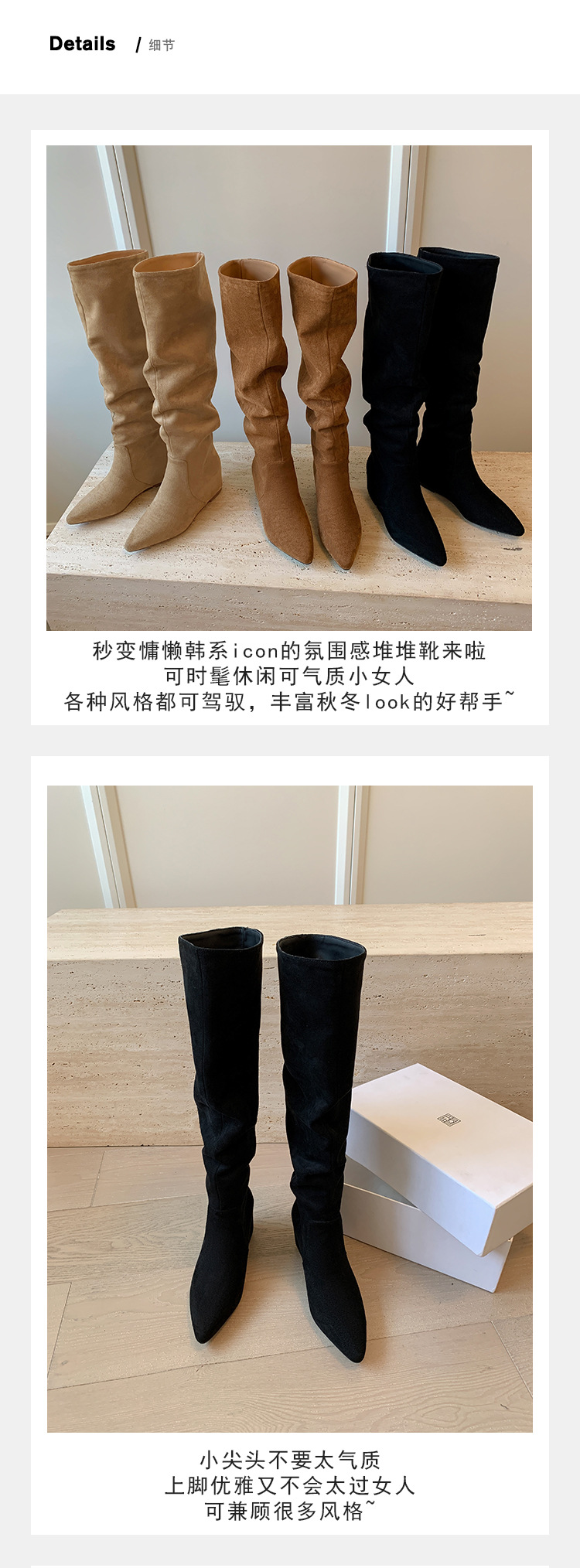 길고 높은 6cm ~ 작은 뾰족한 높이 Maillard 부츠 스웨이드 넓은 파일 부츠 이른 가을 부츠 여성스토어 가기
