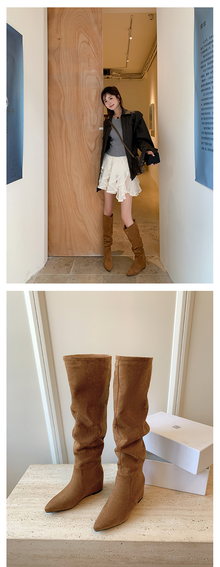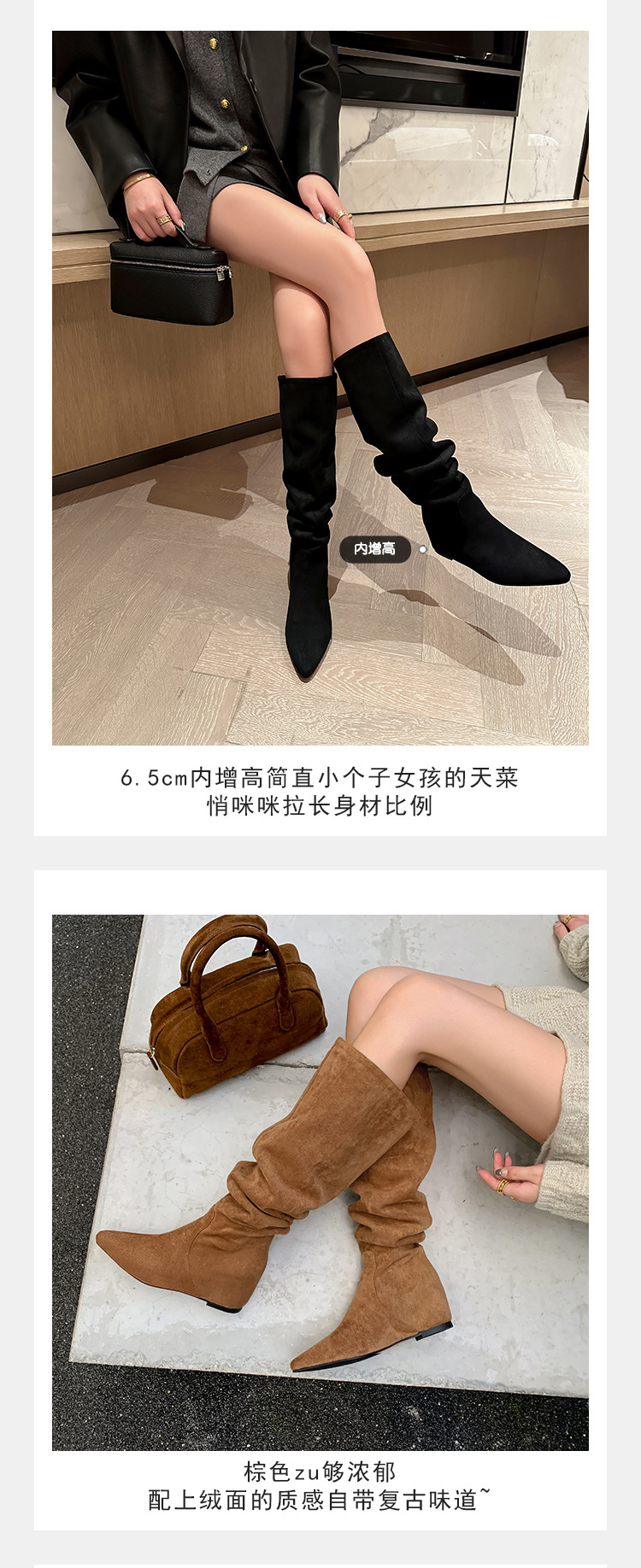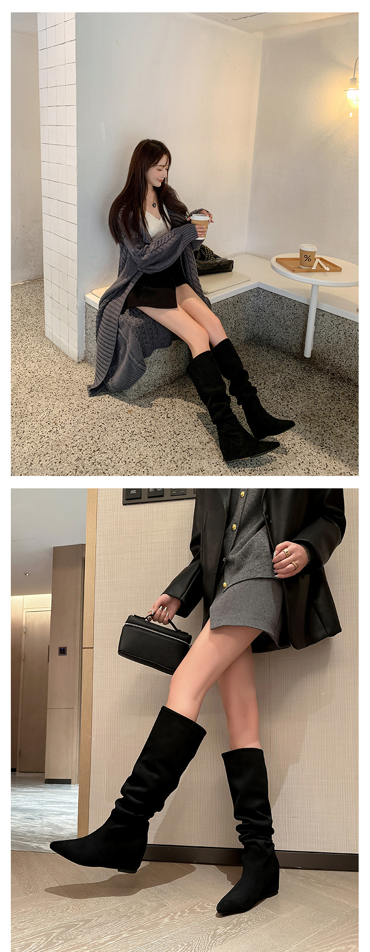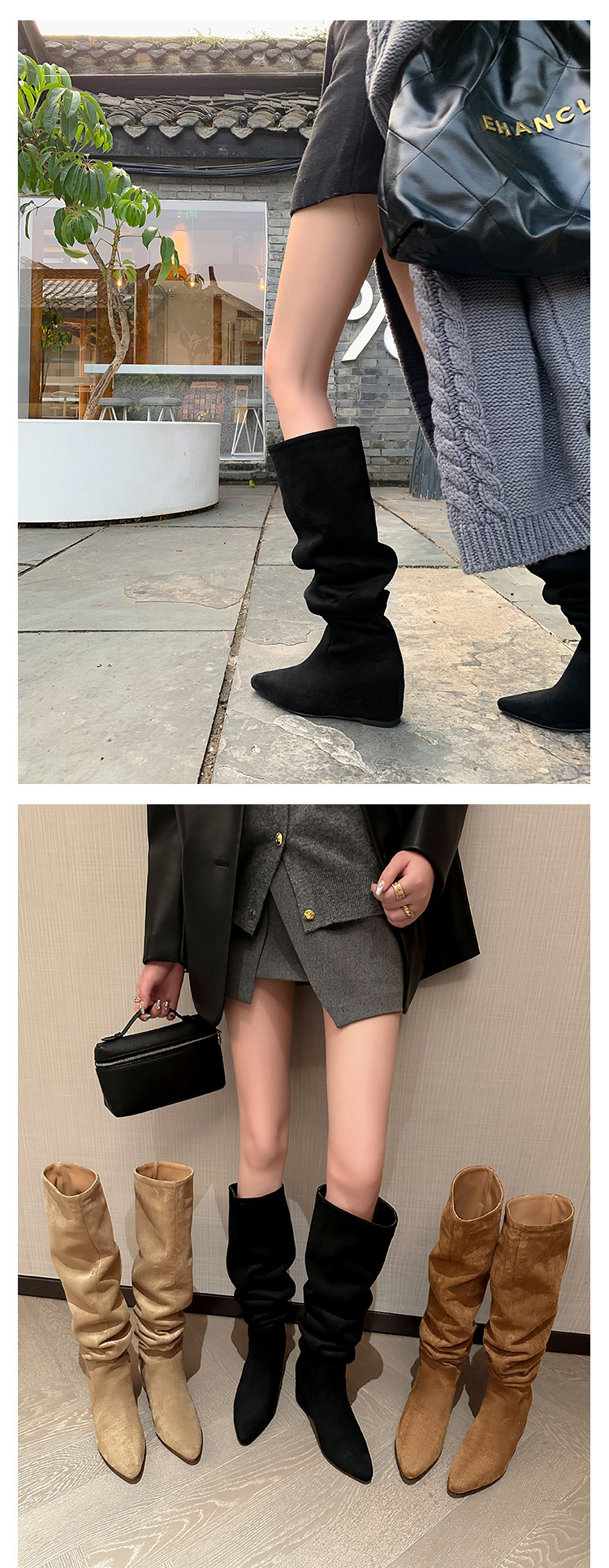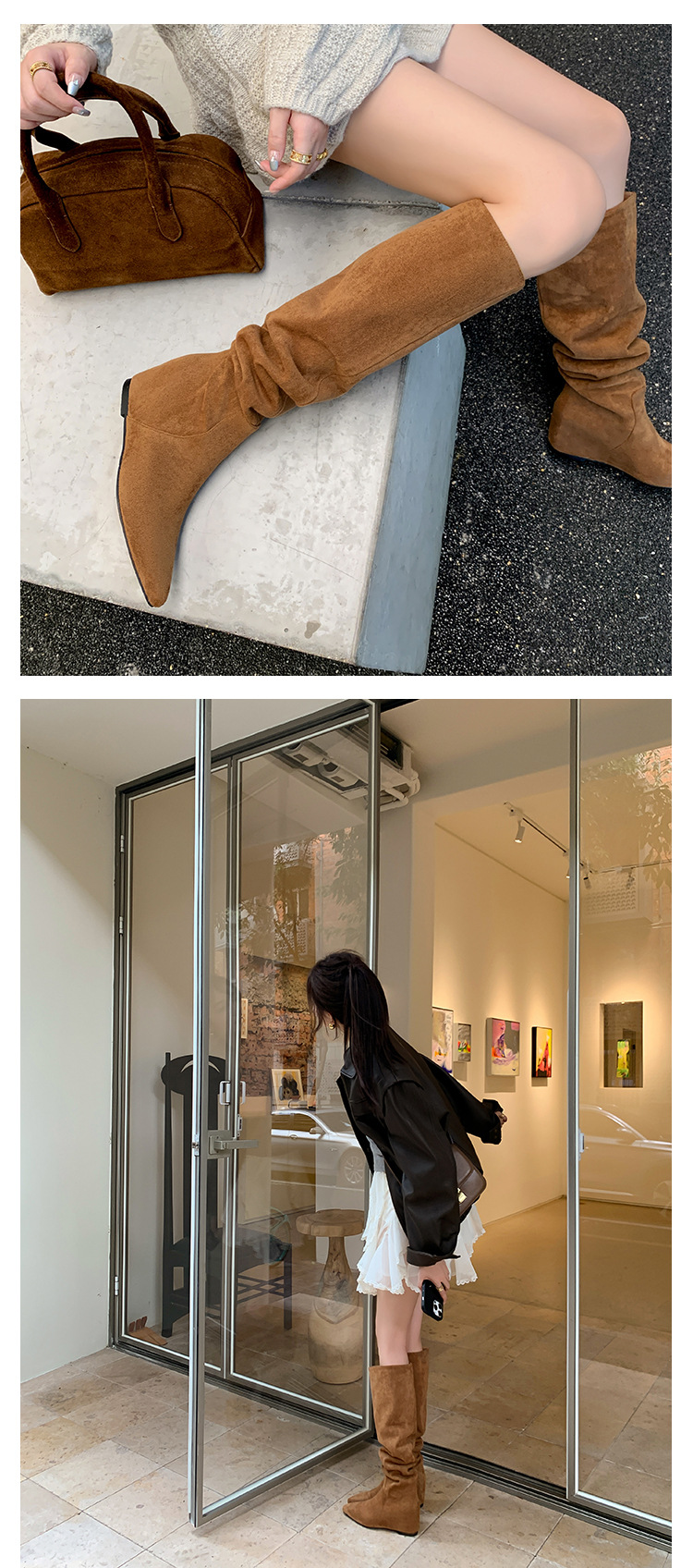 길고 높은 6cm ~ 작은 뾰족한 높이 Maillard 부츠 스웨이드 넓은 파일 부츠 이른 가을 부츠 여성스토어 가기