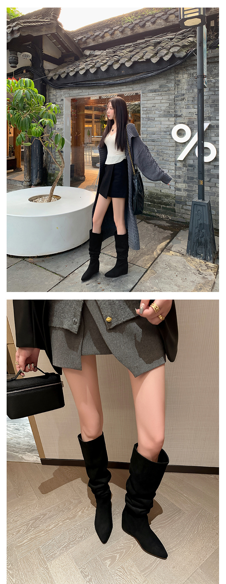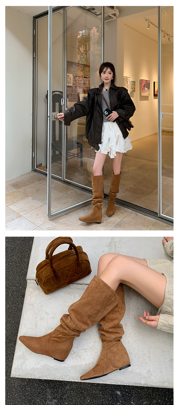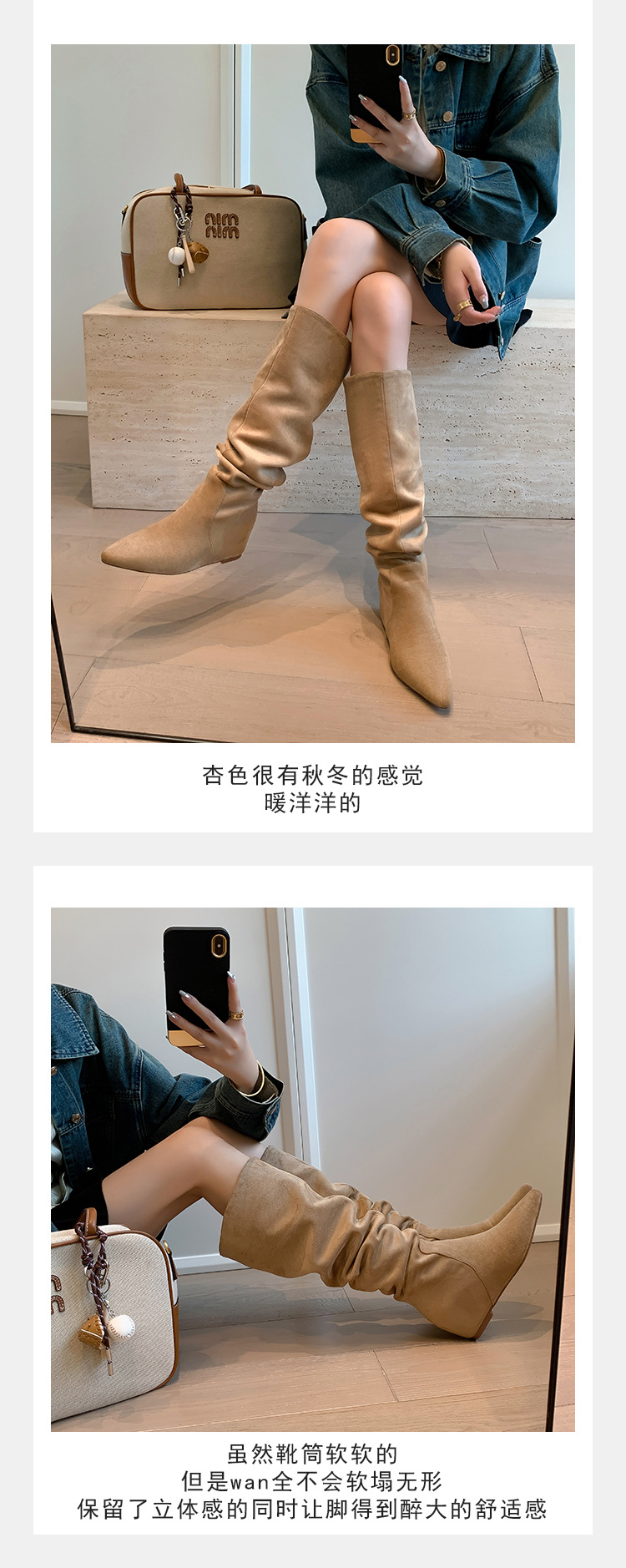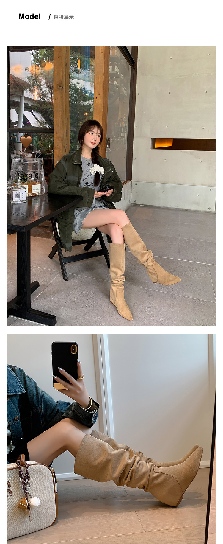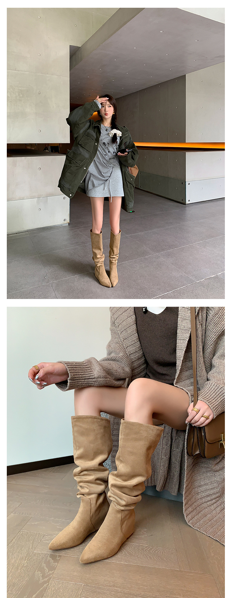 길고 높은 6cm ~ 작은 뾰족한 높이 Maillard 부츠 스웨이드 넓은 파일 부츠 이른 가을 부츠 여성스토어 가기