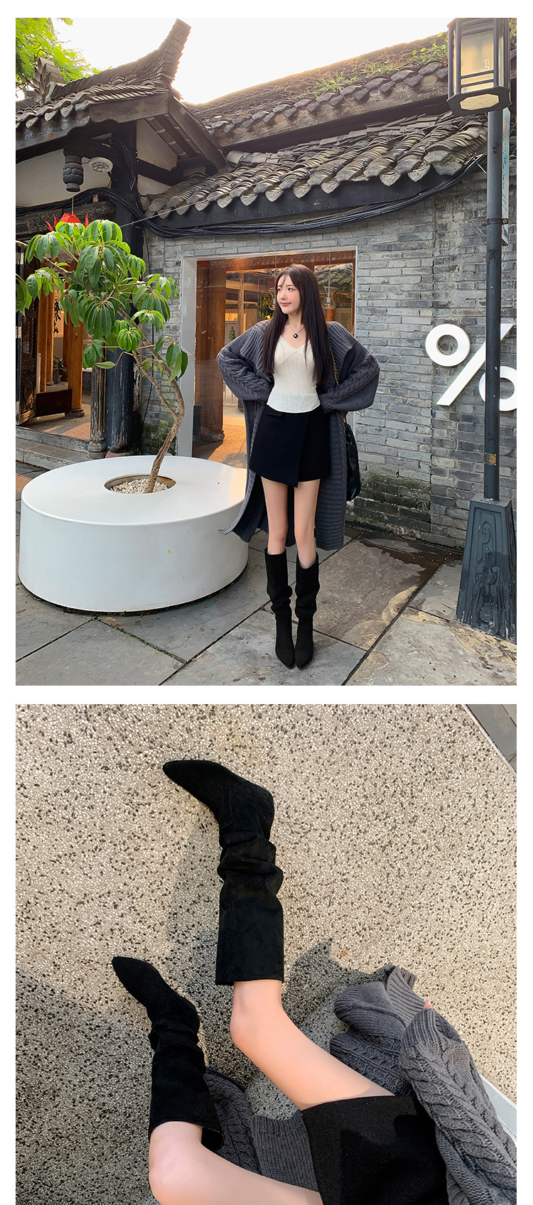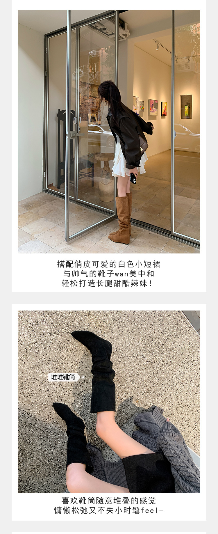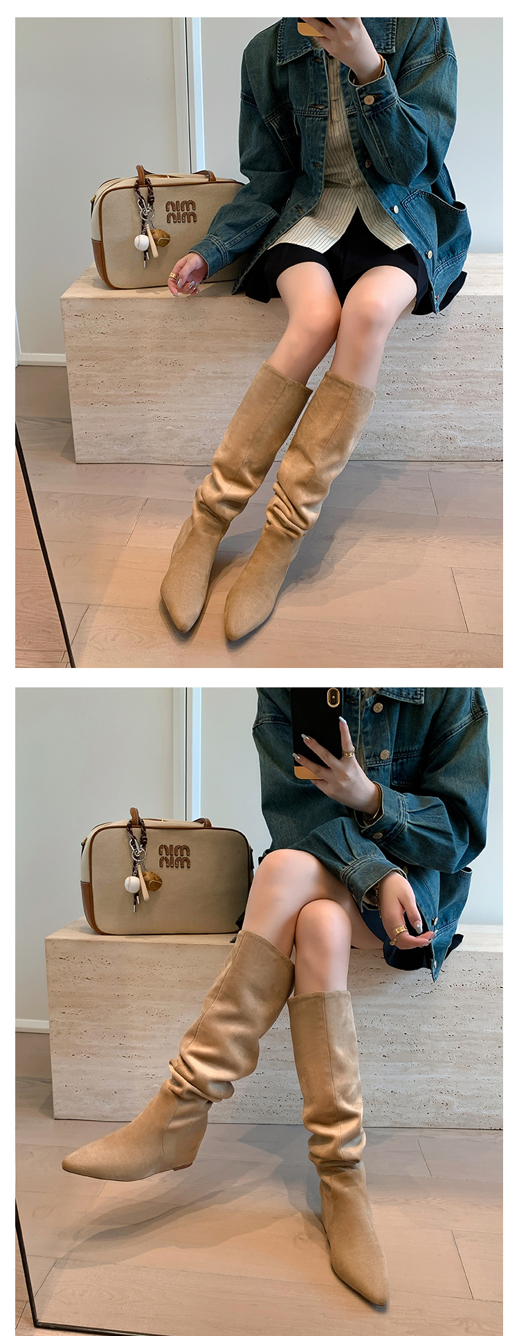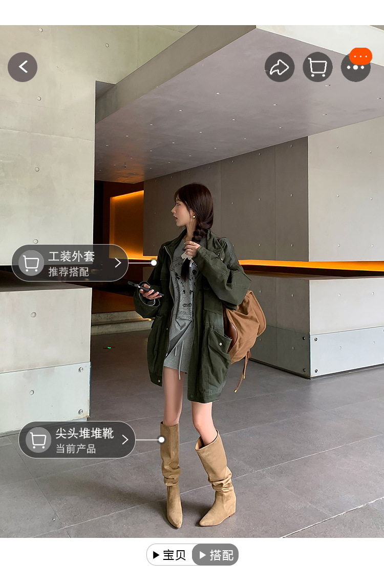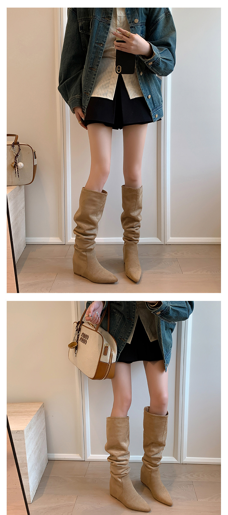 길고 높은 6cm ~ 작은 뾰족한 높이 Maillard 부츠 스웨이드 넓은 파일 부츠 이른 가을 부츠 여성스토어 가기