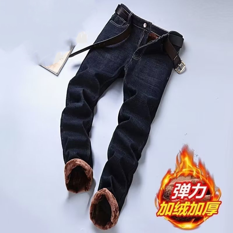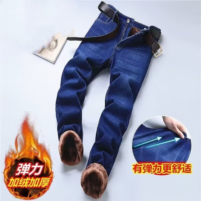 가을과 겨울 청바지 남성용 기모 두꺼운 스트레이트 루즈 플러스 사이즈 남성용 워크 따뜻한 겨울 내한성 남성용 바지스토어 가기