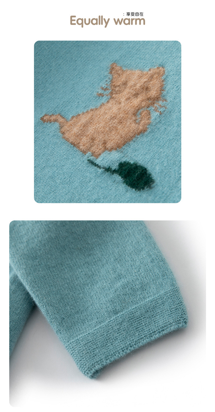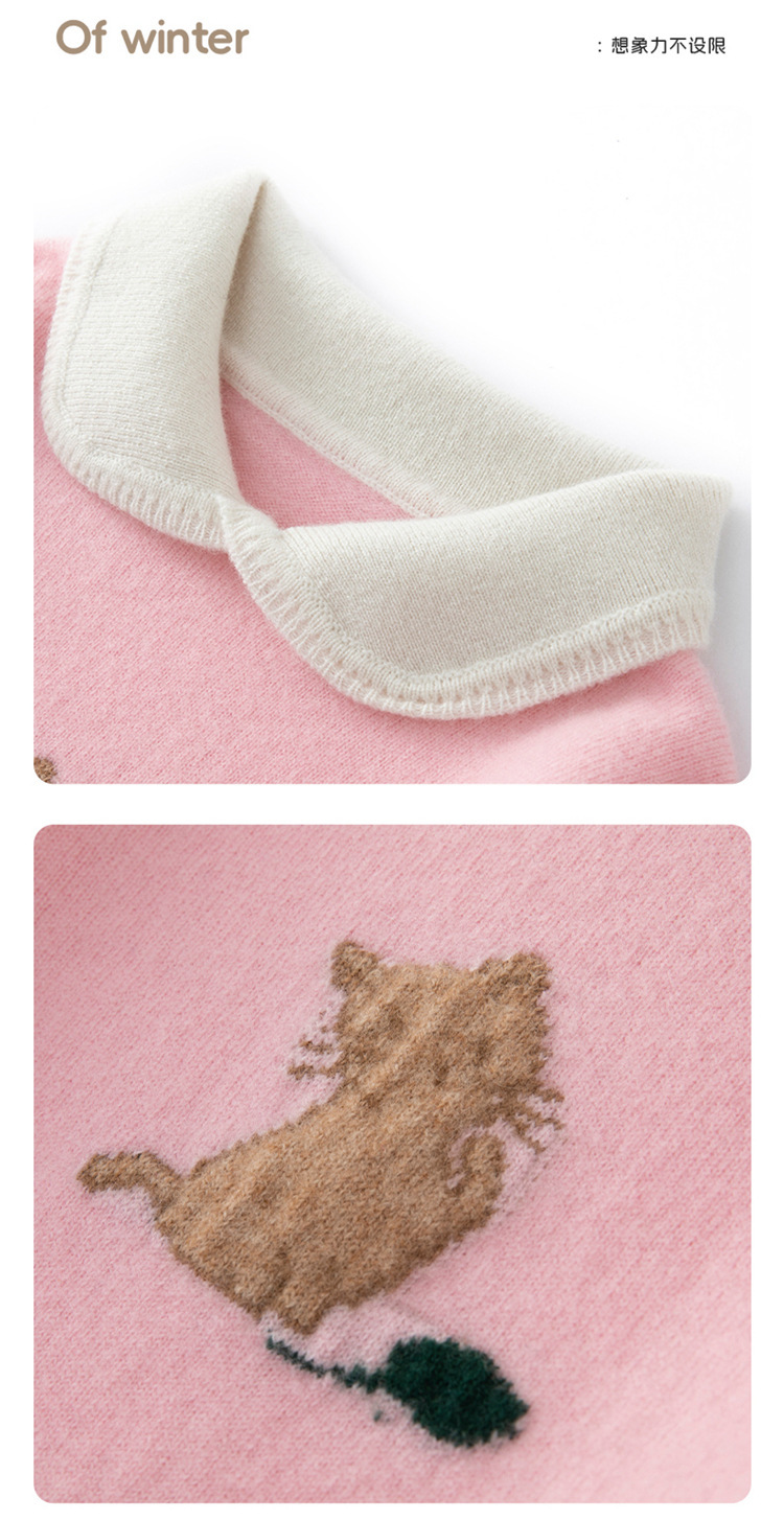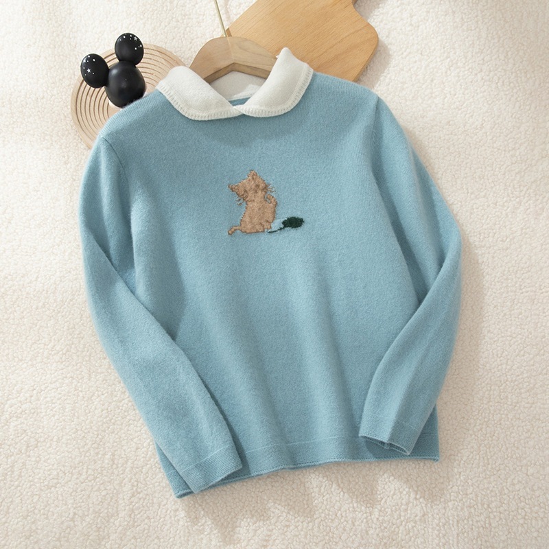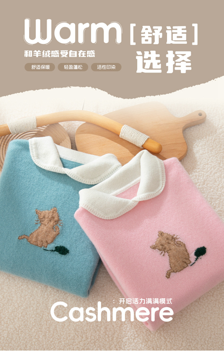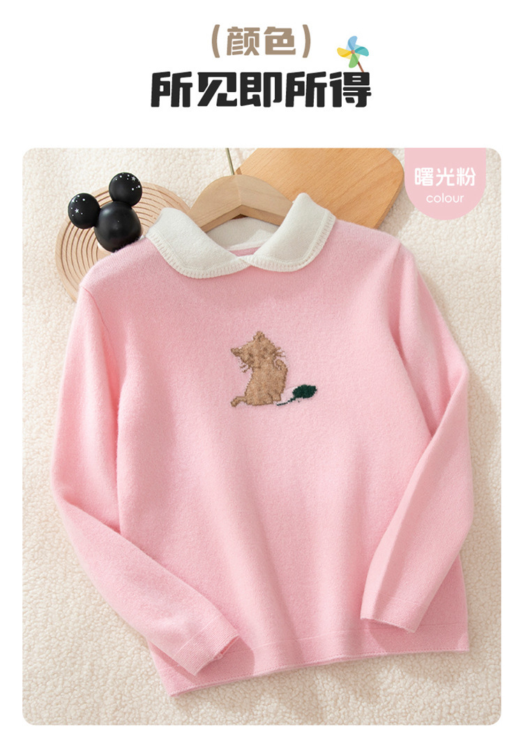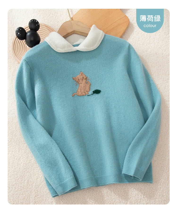 가을과 겨울 어린이 캐시미어 인형 칼라 여성 공주 스타일 새끼 고양이 패턴 큰 어린이를위한 캐시미어 스웨터