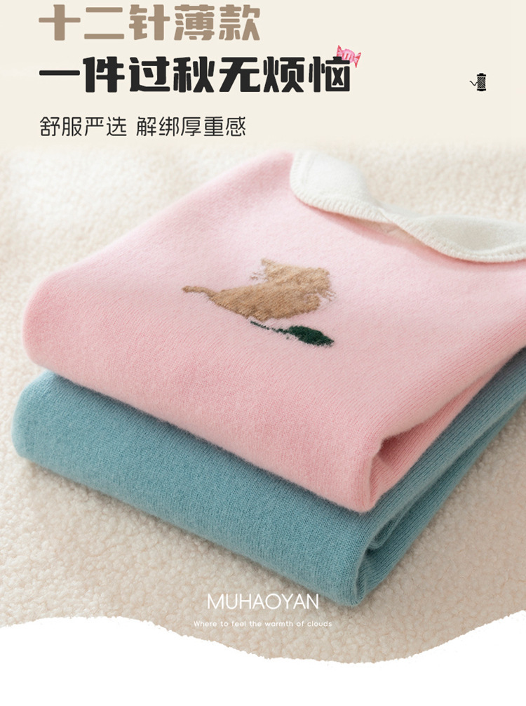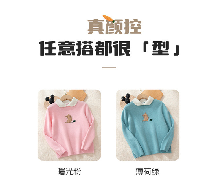 가을과 겨울 어린이 캐시미어 인형 칼라 여성 공주 스타일 새끼 고양이 패턴 큰 어린이를위한 캐시미어 스웨터스토어 가기