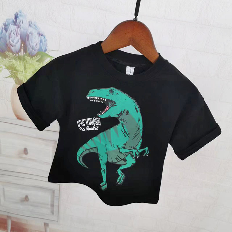 2024 새로운 여름 소년 면 반팔 티셔츠 인쇄 소녀 아동복 어린이 탑 공룡 코튼 키즈스토어 가기