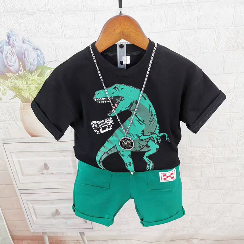 • F00026 검은색 공룡 티셔츠 + F78079 녹색 반바지