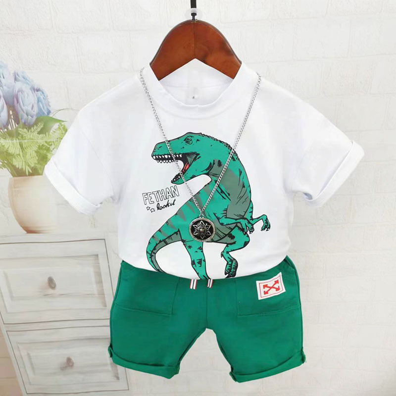 • F00026 흰색 공룡 티셔츠 + F78079 녹색 반바지