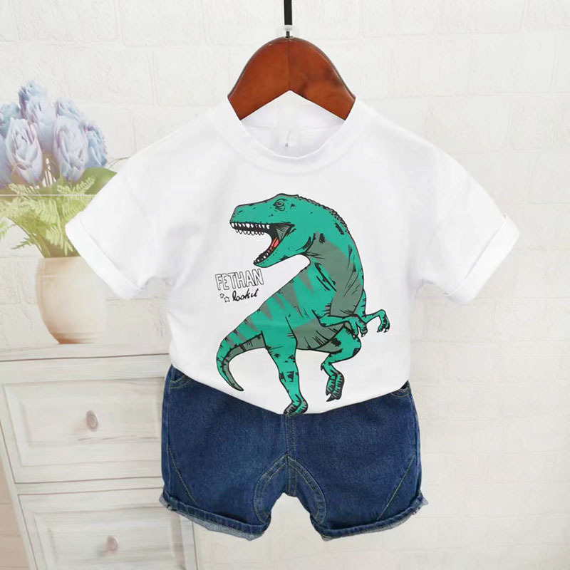 • F00026 흰색 공룡 티셔츠 + F00044 블루 데님 반바지